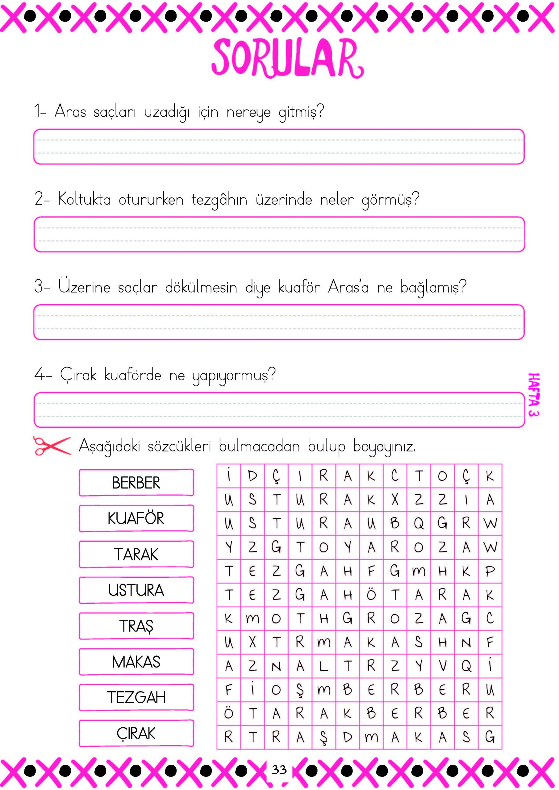 - 1. sınıf Türkçe dersi yaz tatili çalışmaları