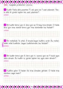 - 1. sınıf matematik dersi yaz tatili çalışmaları
