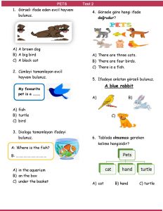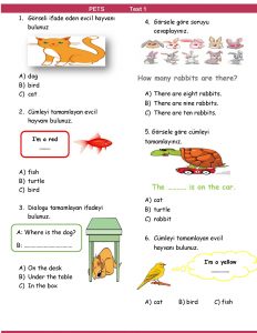 2. Sınıf İngilize “PETS – EVCİL HAYVANLAR” değerlendirme testleri