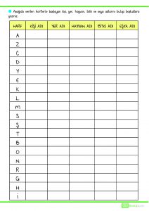 2. SINIF TÜRKÇE İSİM ŞEHİR ETKİNLİĞİ