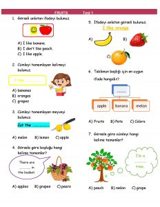 2. SINIF İNGİLİZCE FRUITS (MEYVELER) TEST