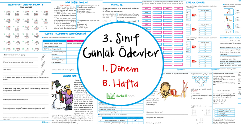3. Sınıf 1. Dönem 8. Hafta Günlük Ödevlerini İndirmek İçin TIKLAYIN!