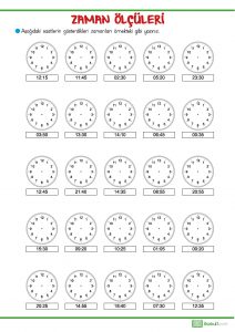 - 4. sınıf Matematik Saatler Çalışma Sayfaları