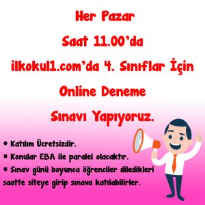 4. Sınıf 2. Dönem 1. Yazılı Sınavlar İçin TIKLAYIN!