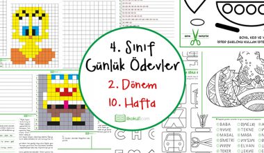 2018 – 2019 eğitim – öğretim yılında da günlük ödev paylaşımlarımız devam edecek. 4. sınıf günlük ödevlerde bu yıl Türkçe, Matematik, Fen Bilimleri ve Sosyal Bilgiler dersleri konularına ait etkinlikler paylaşılacaktır. Çalışmalarımızın