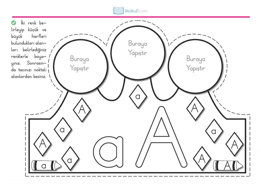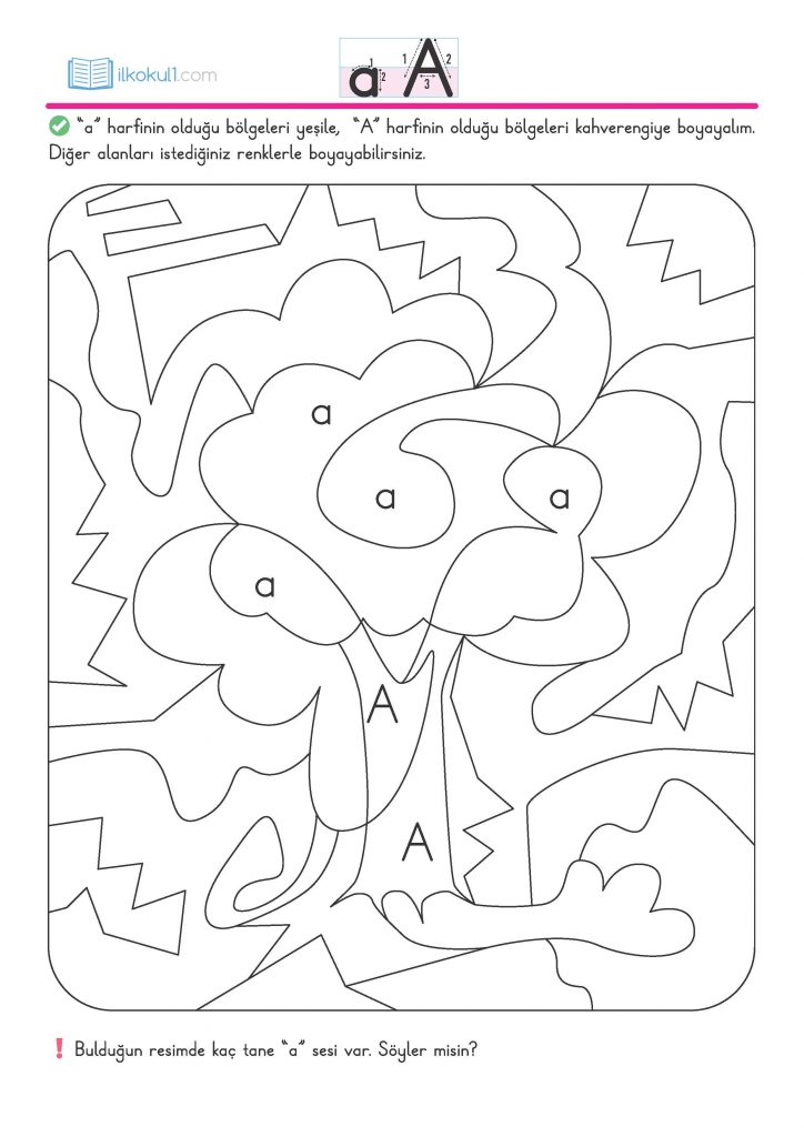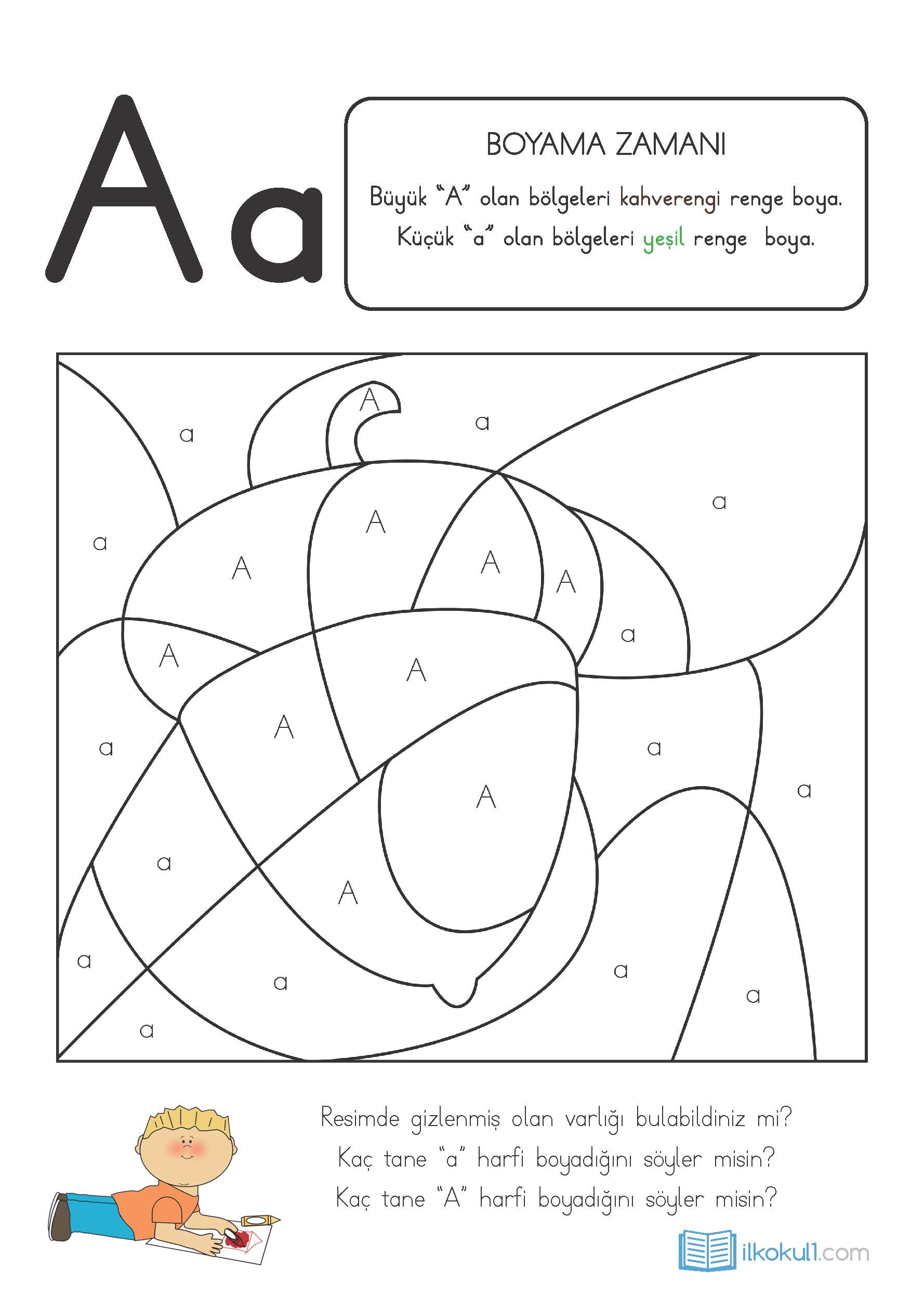 2. “a” harfinin olduğu bölgeleri yeşile, “A” harfinin olduğu bölgeleri kahverengiye boyayalım.