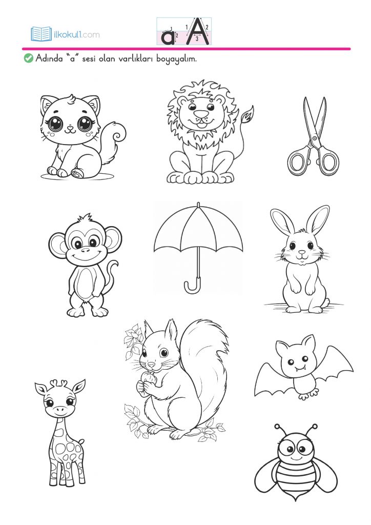 4. Adında “a” sesi olan varlıkları boyayalım.