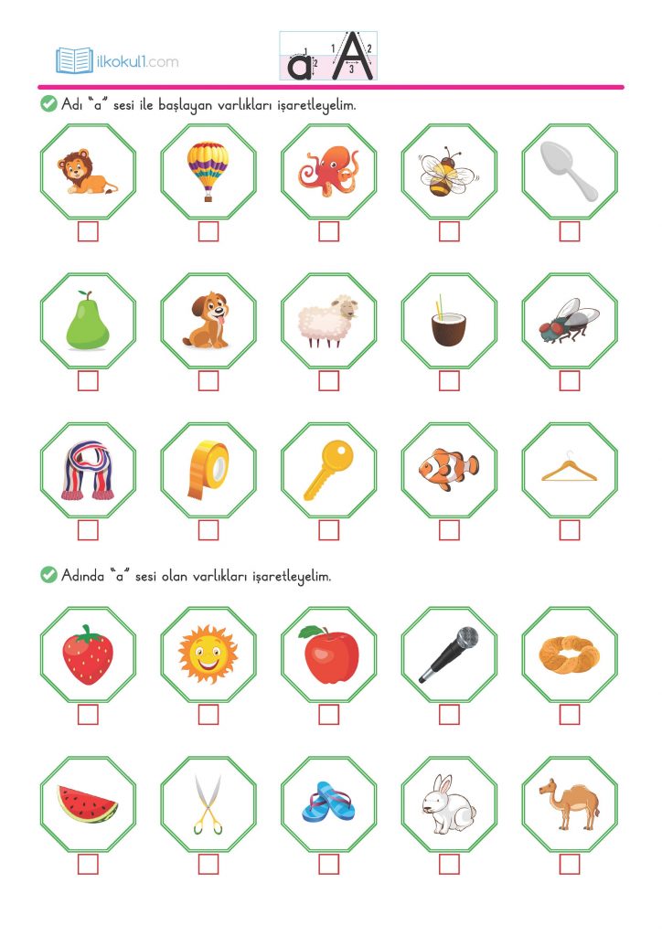 6. Adında “a” sesi olan varlıkları işaretleyelim.