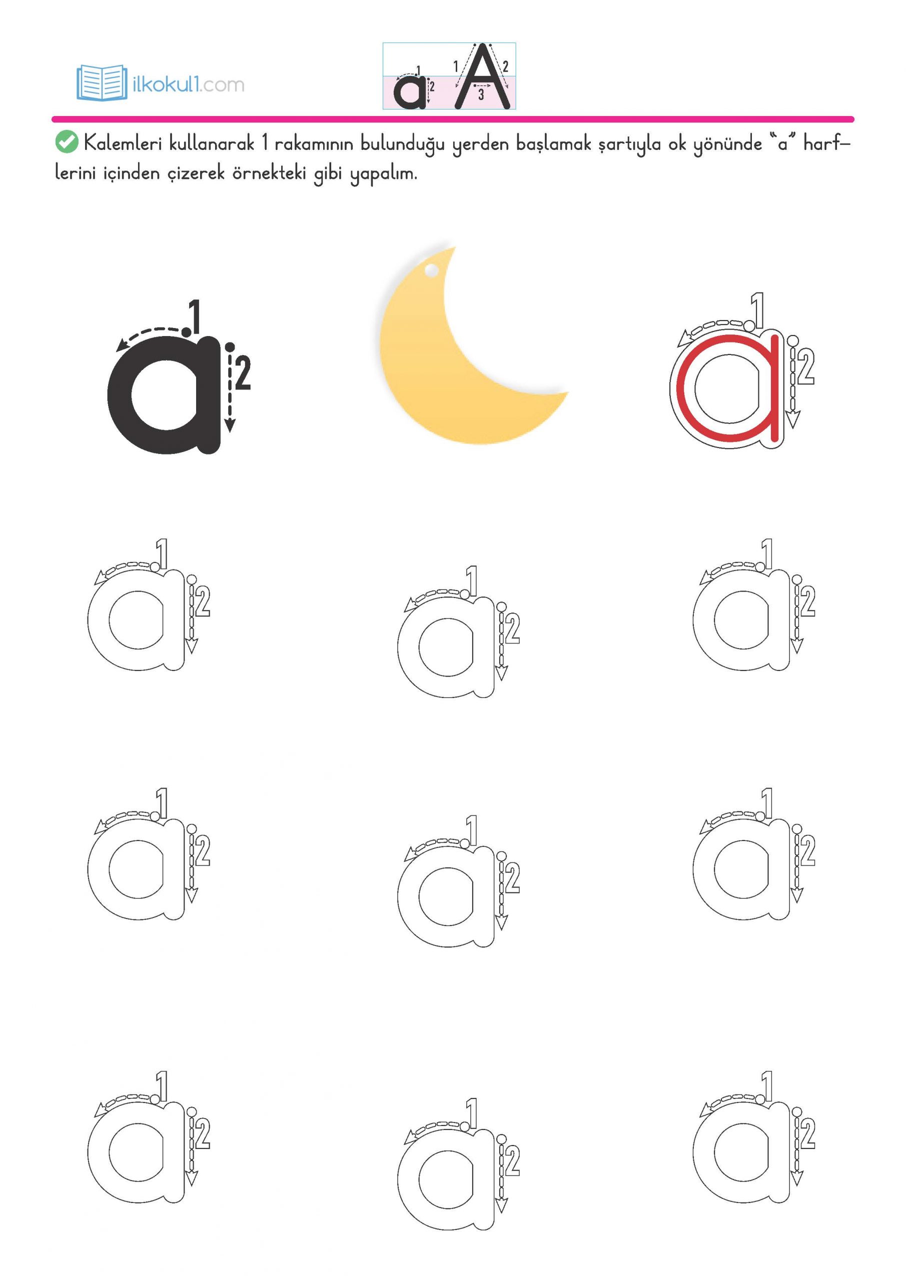 8. Kalemleri kullanarak ok yönünde “a” harflerini içinden çizerek örnekteki gibi yapalım.
