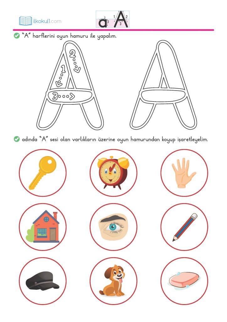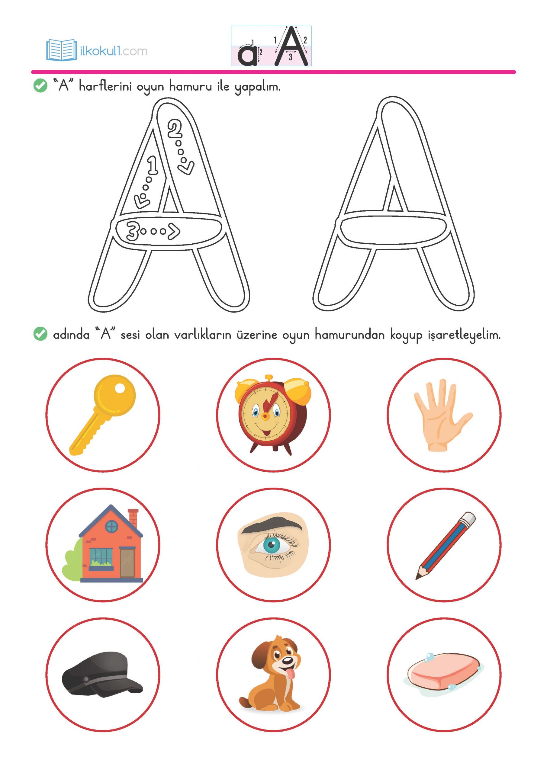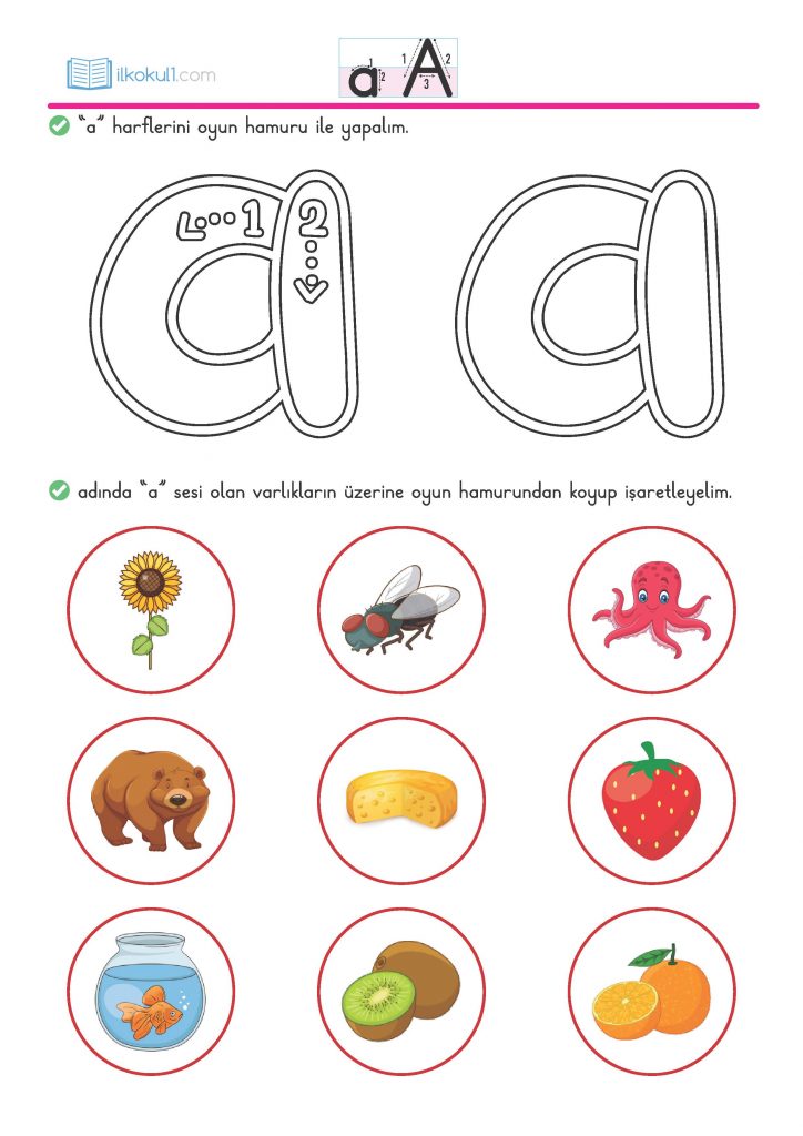 15. Adında “A” sesi olan varlıkların üzerine oyun hamurundan koyup işaretleyelim.