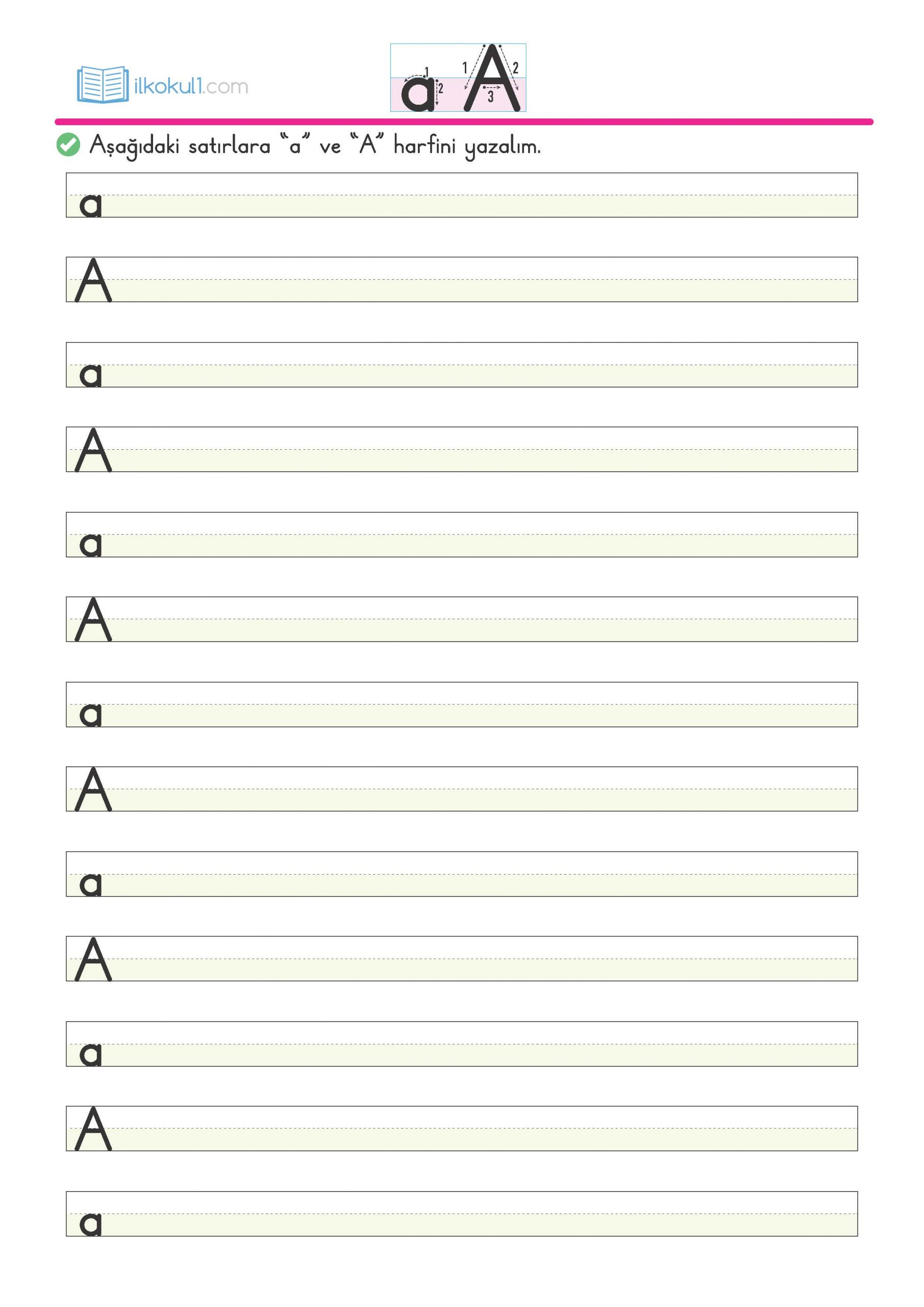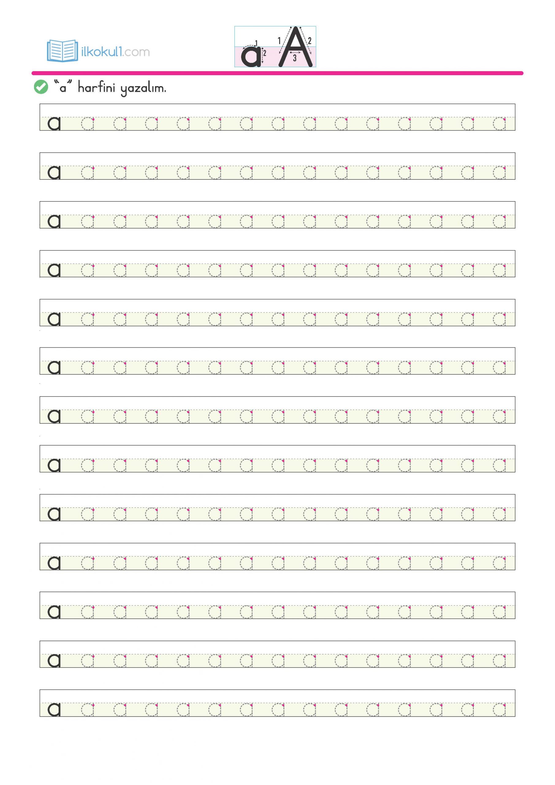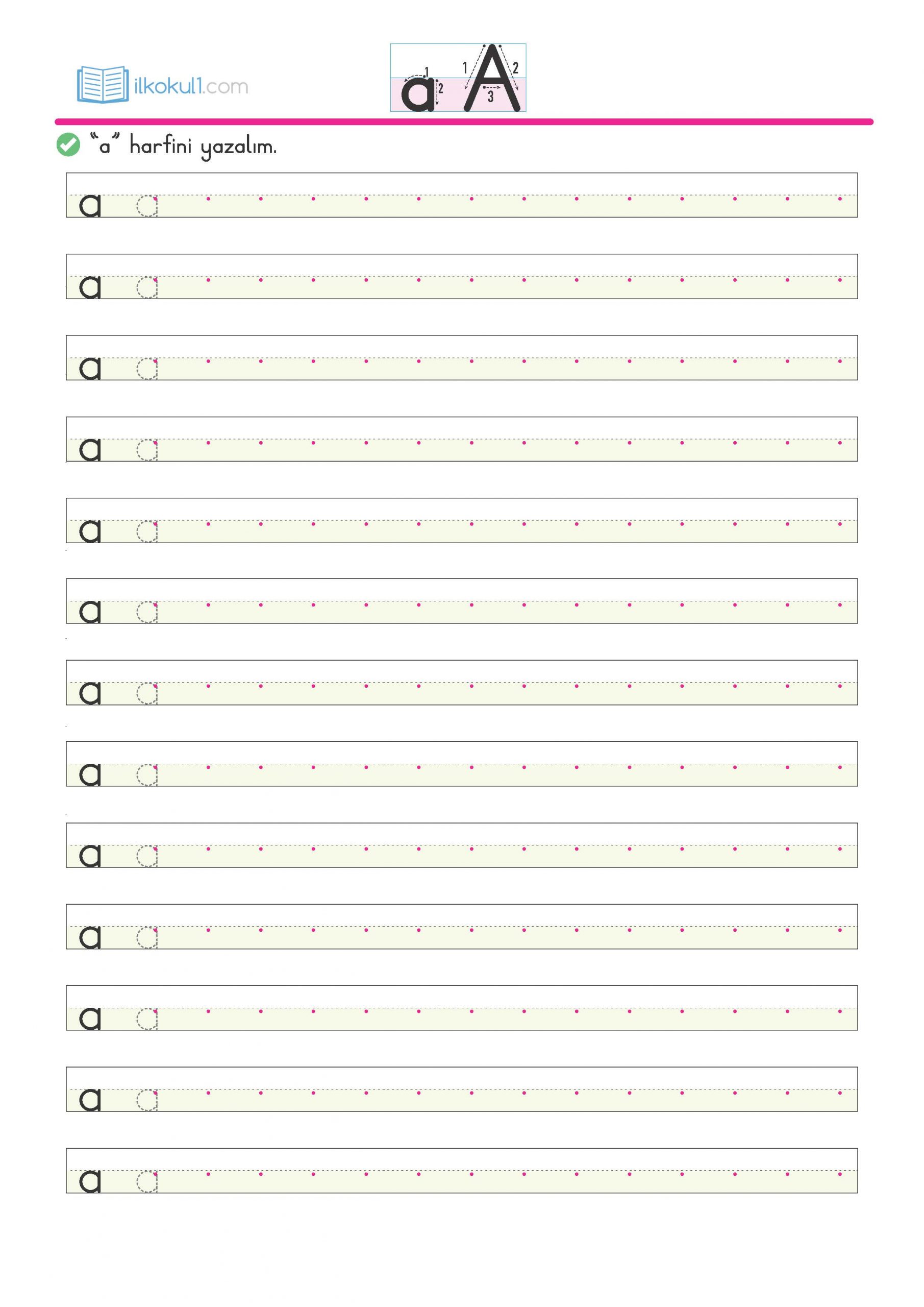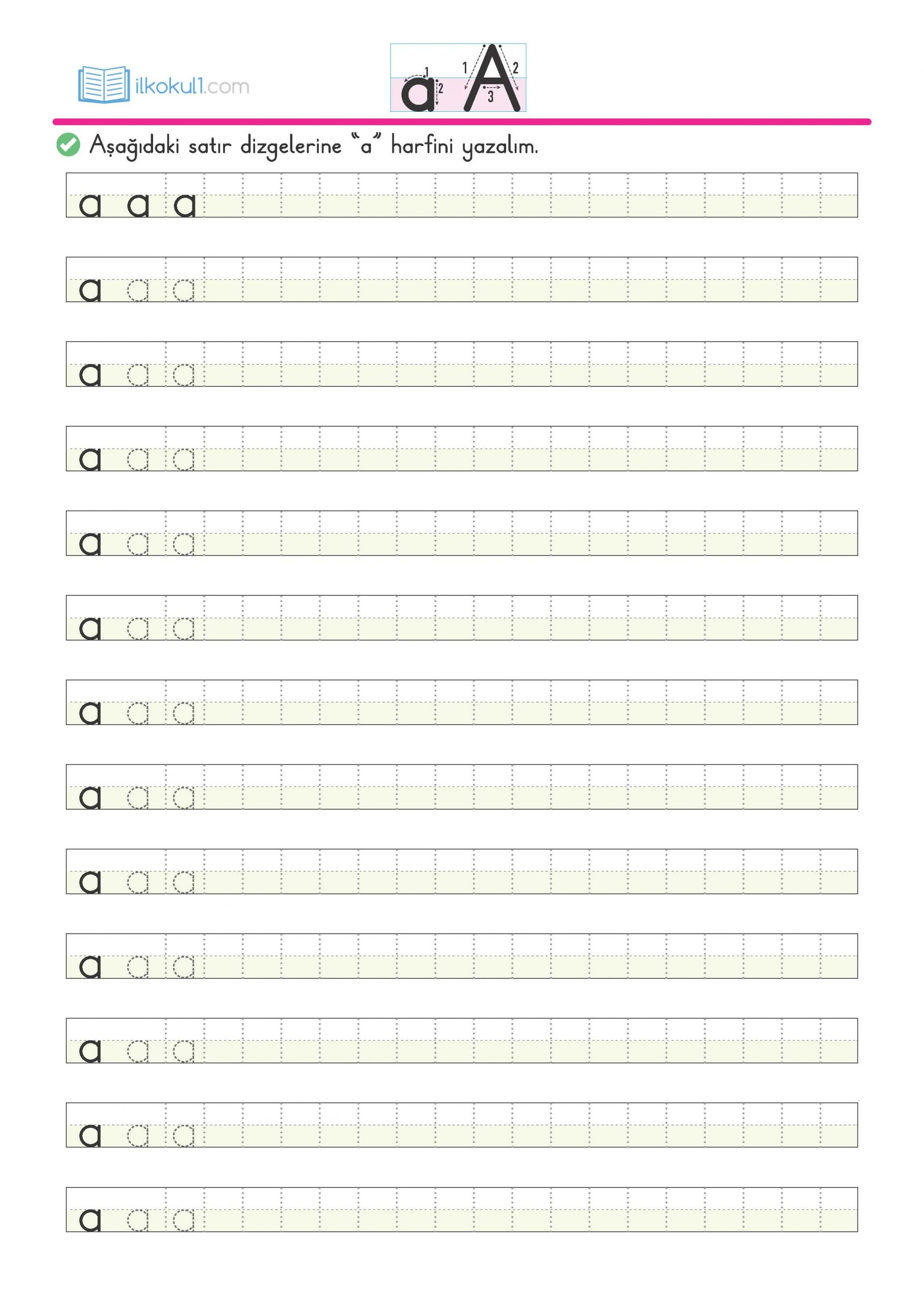 12. Aşağıdaki satır dizgelerine “a” harfini yazalım.