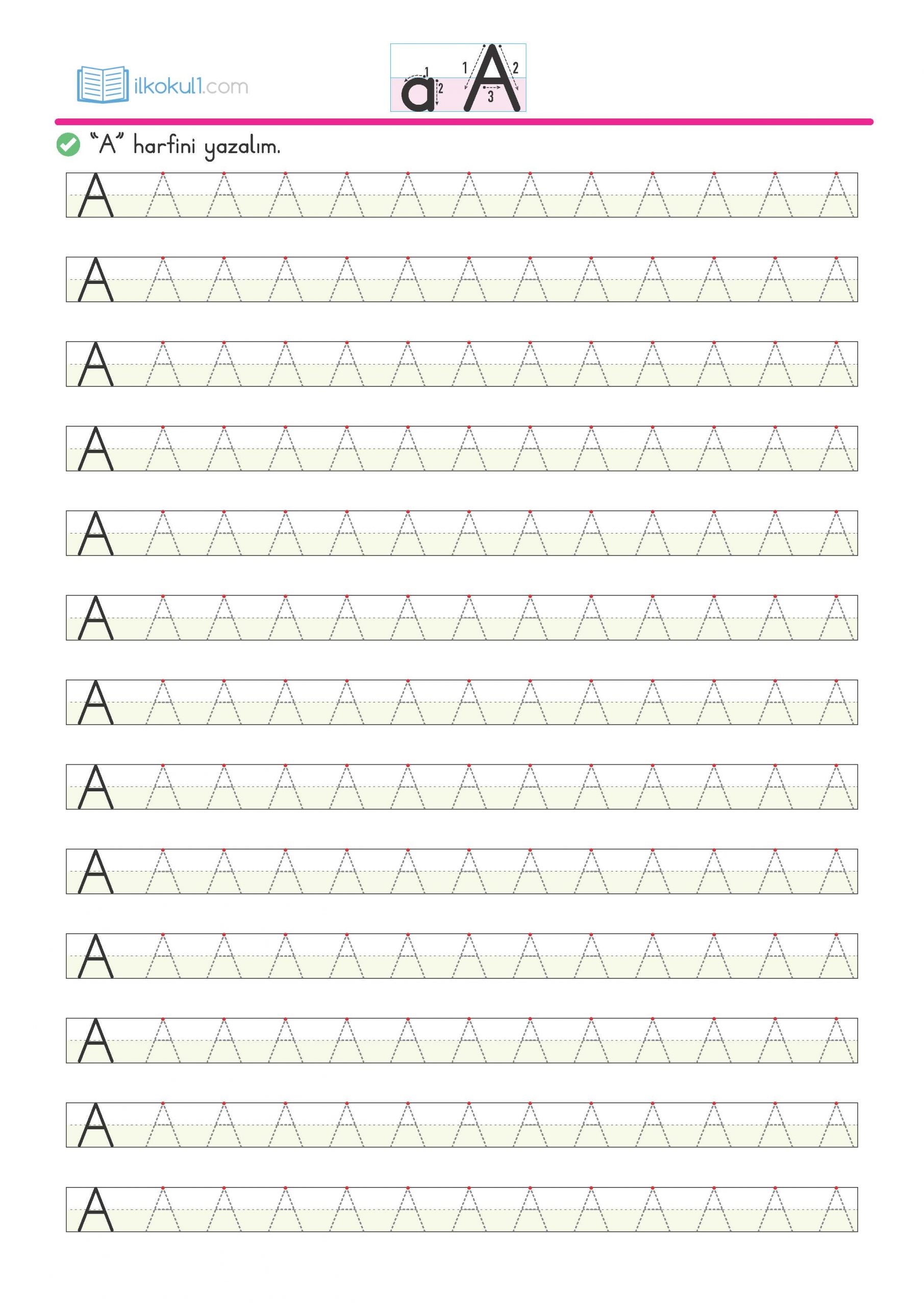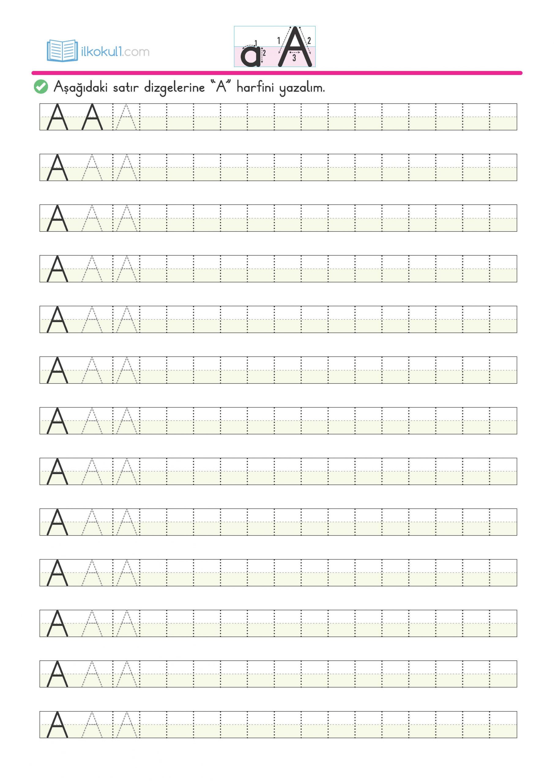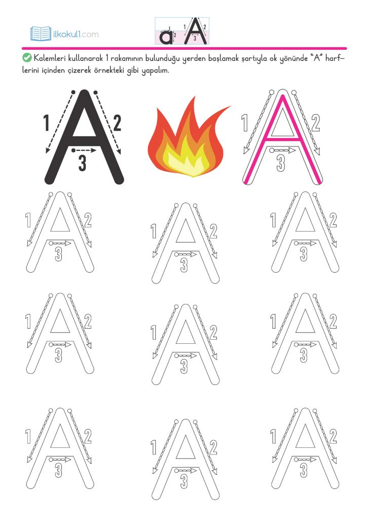 13. Kalemleri kullanarak ok yönünde “A” harflerini içinden çizerek örnekteki gibi yapalım.