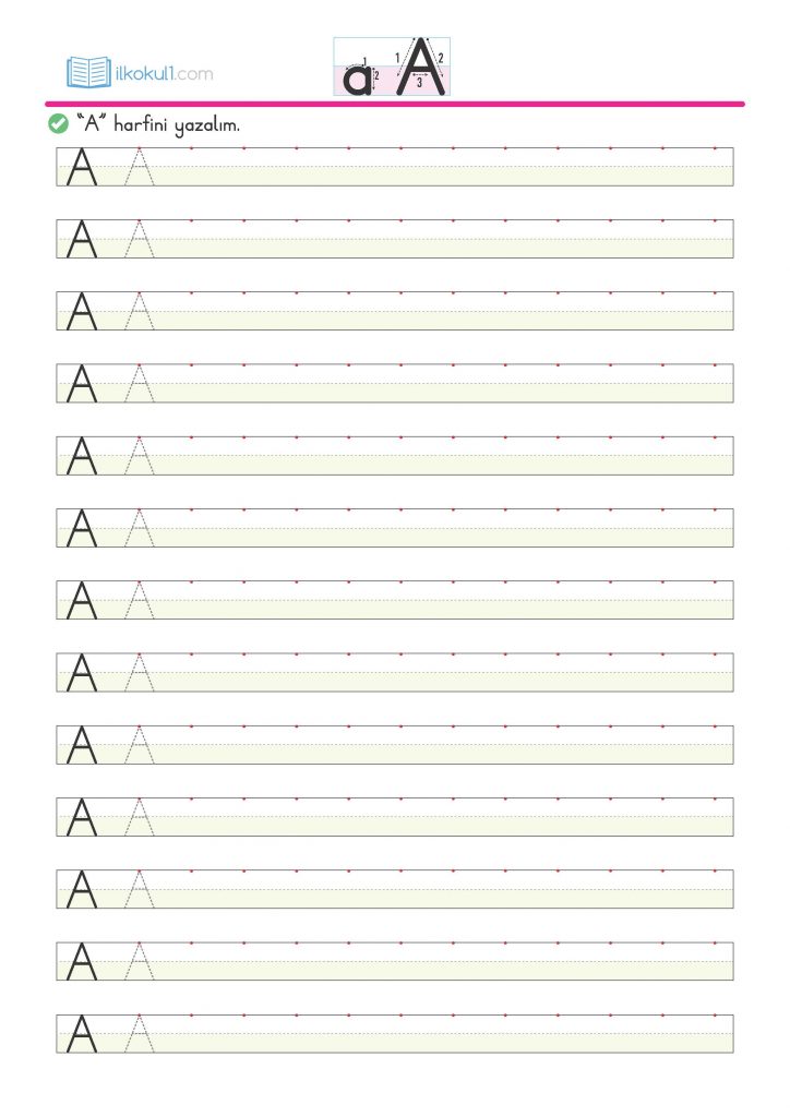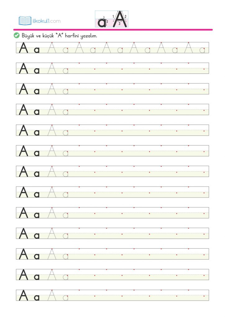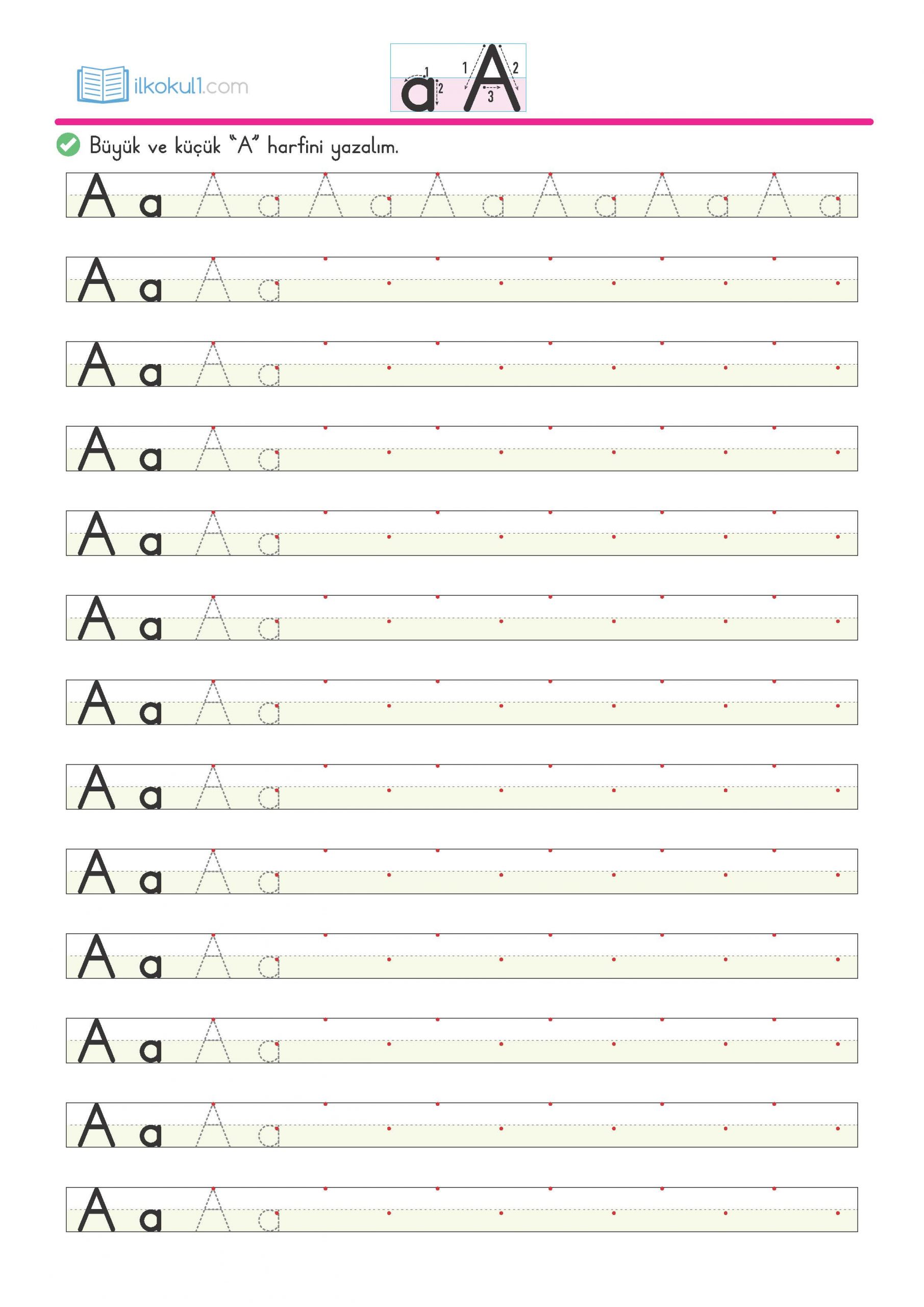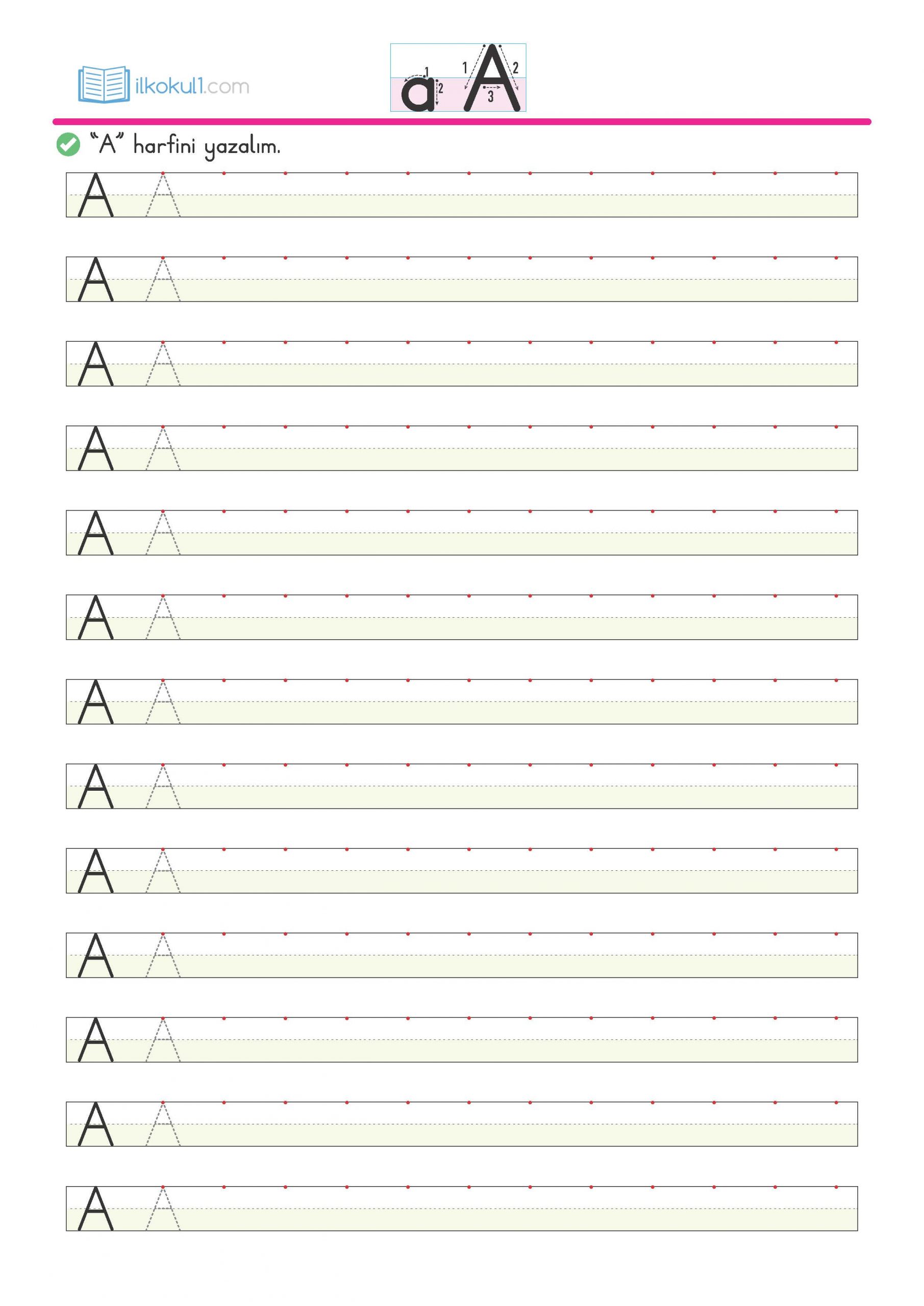13. Kalemleri kullanarak ok yönünde “A” harflerini içinden çizerek örnekteki gibi yapalım.