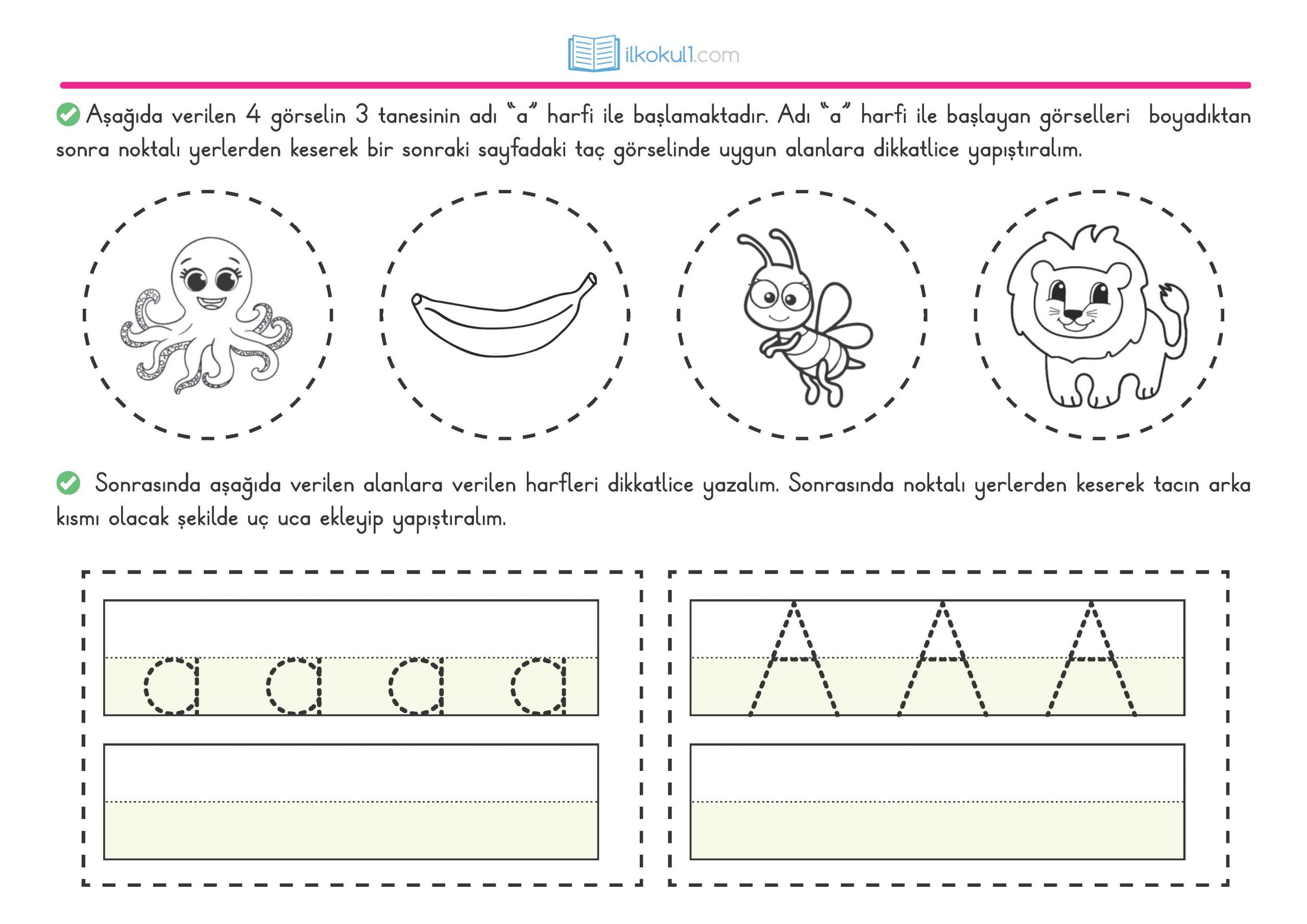 20. Adı “a” harfi ile başlayan görselleri boyayınız ve kesiniz.