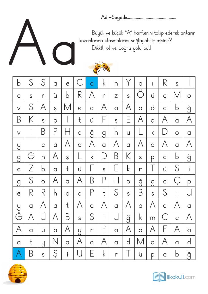 21. Büyük ve küçük “A” harflerini takip ederek arıların kovanlarına ulaşmalarını sağlayınız.