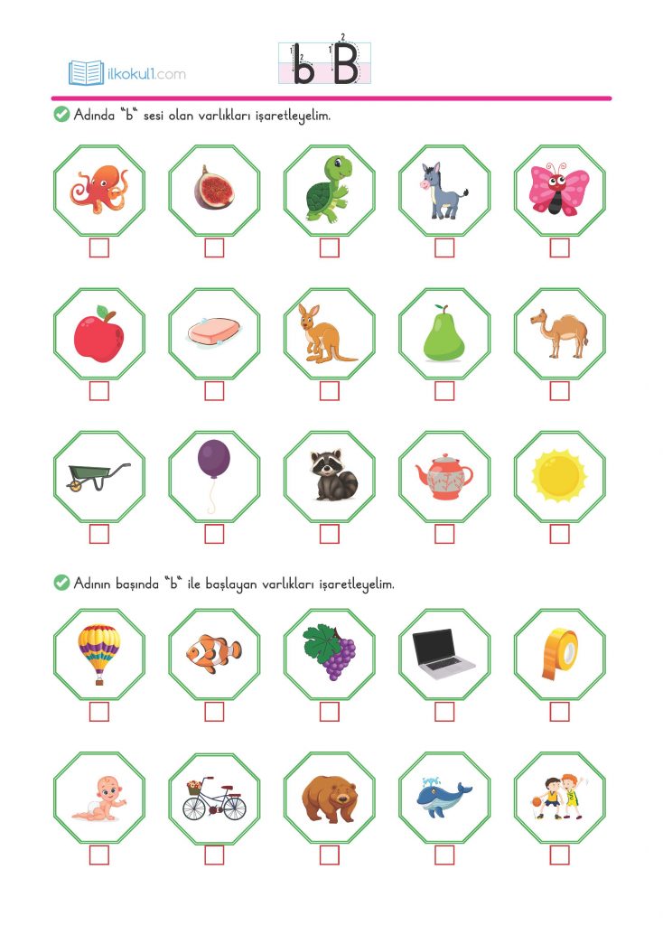 - Adında “b” sesi olan varlıkları işaretleyelim.