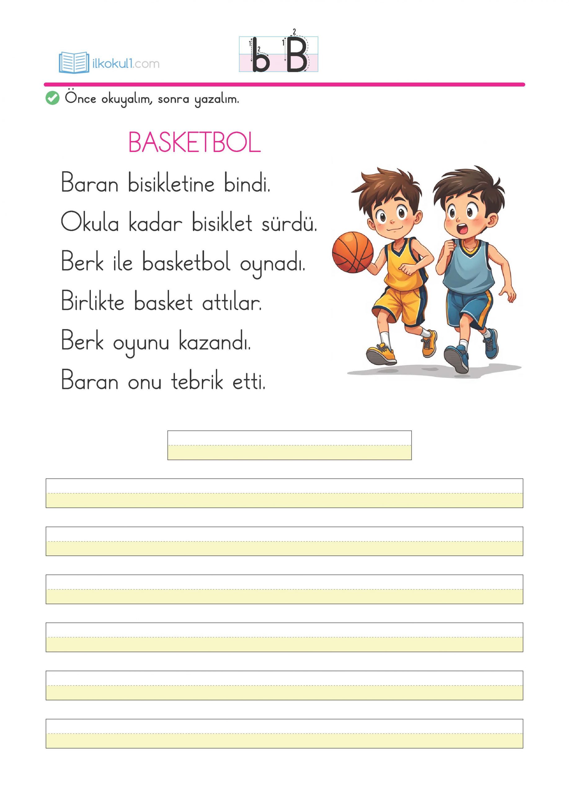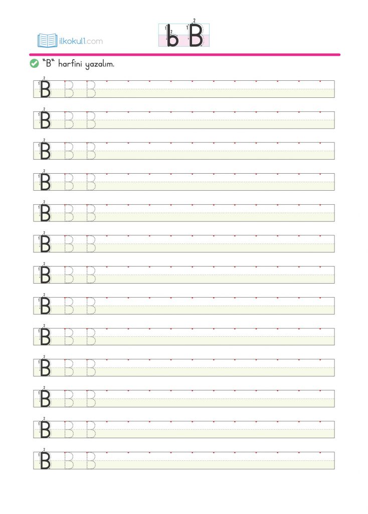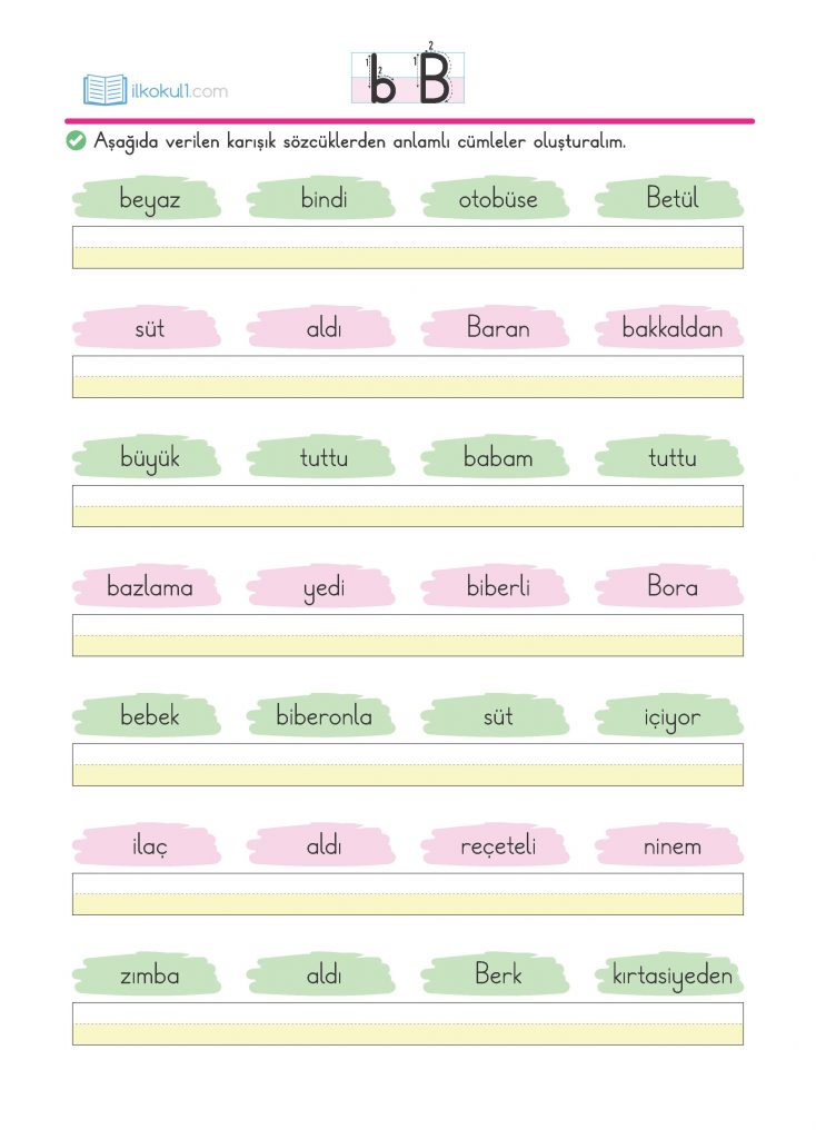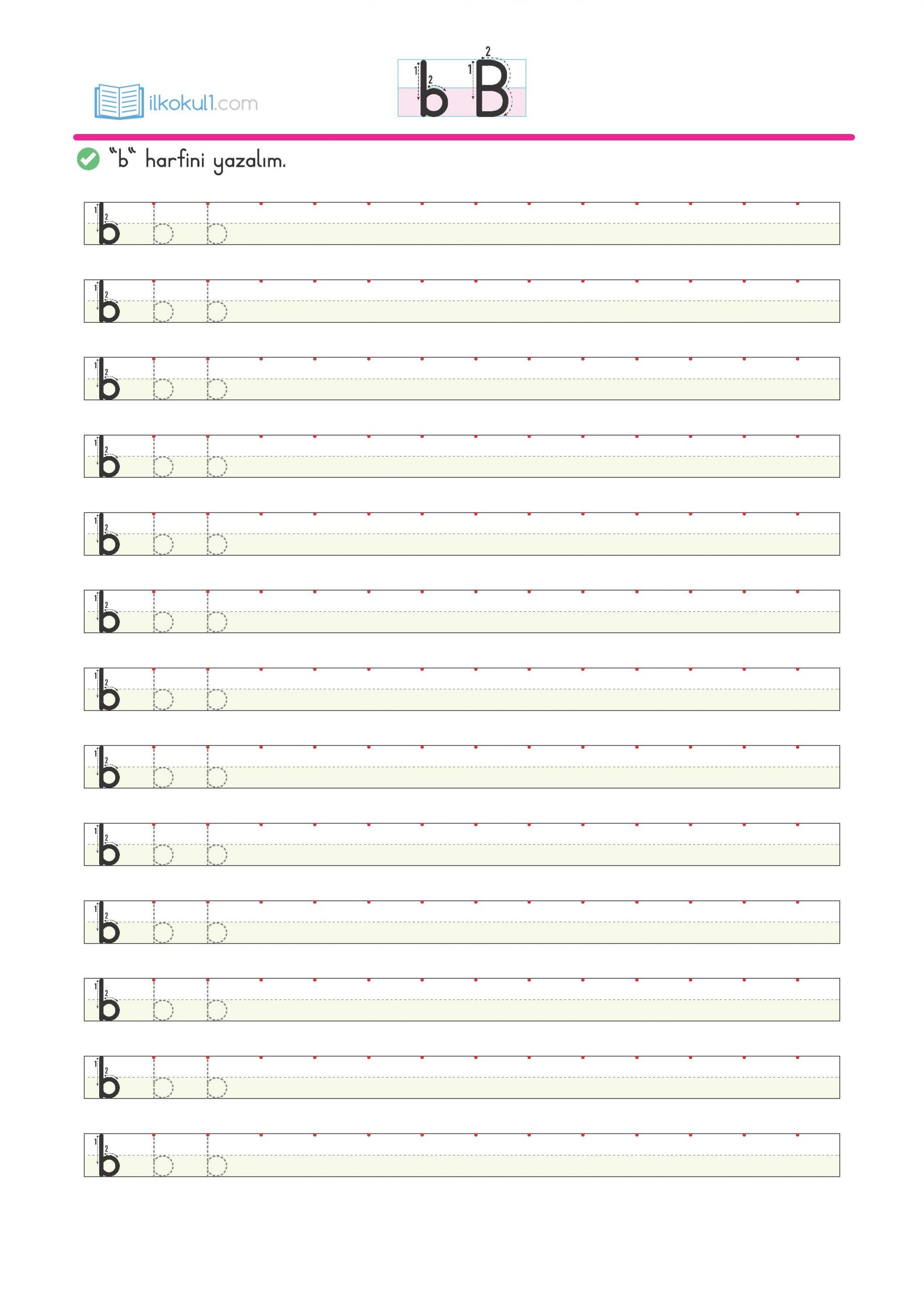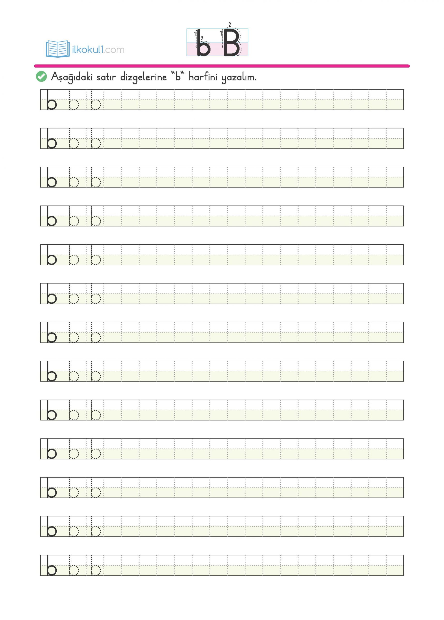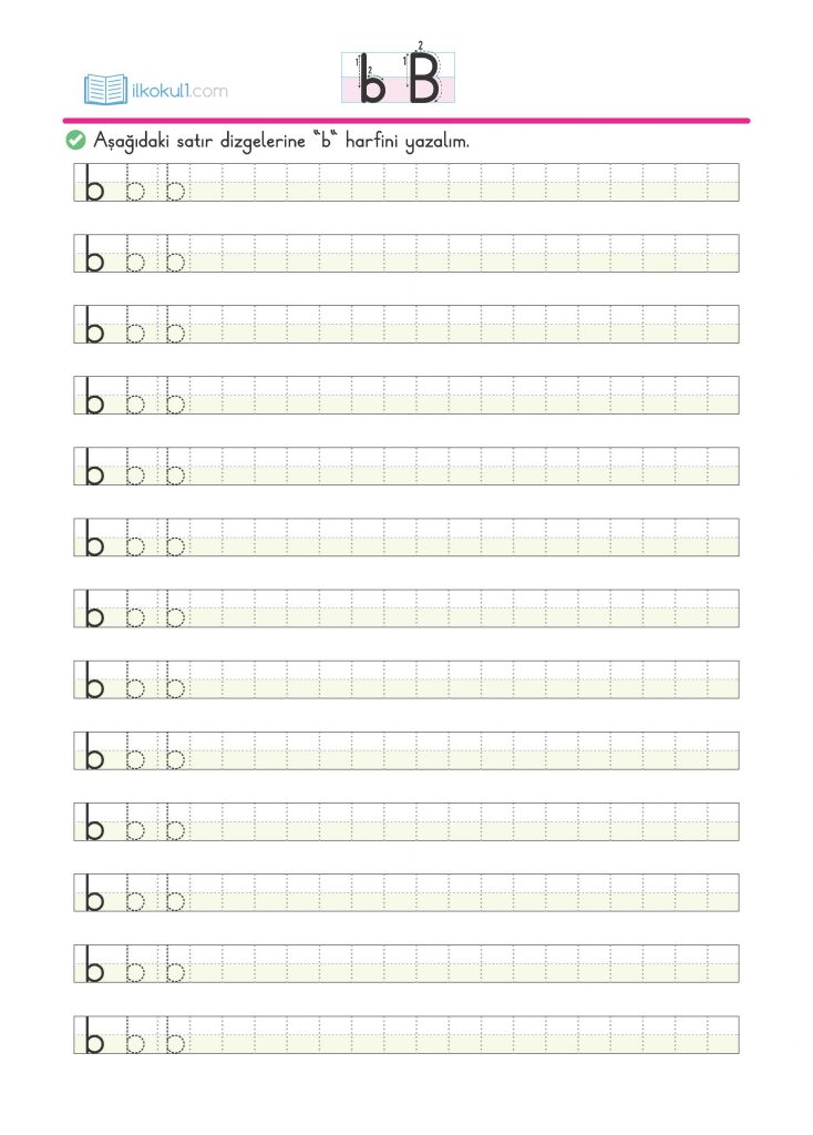 - Aşağıdaki satır dizgelerine “b” harfini yazalım.