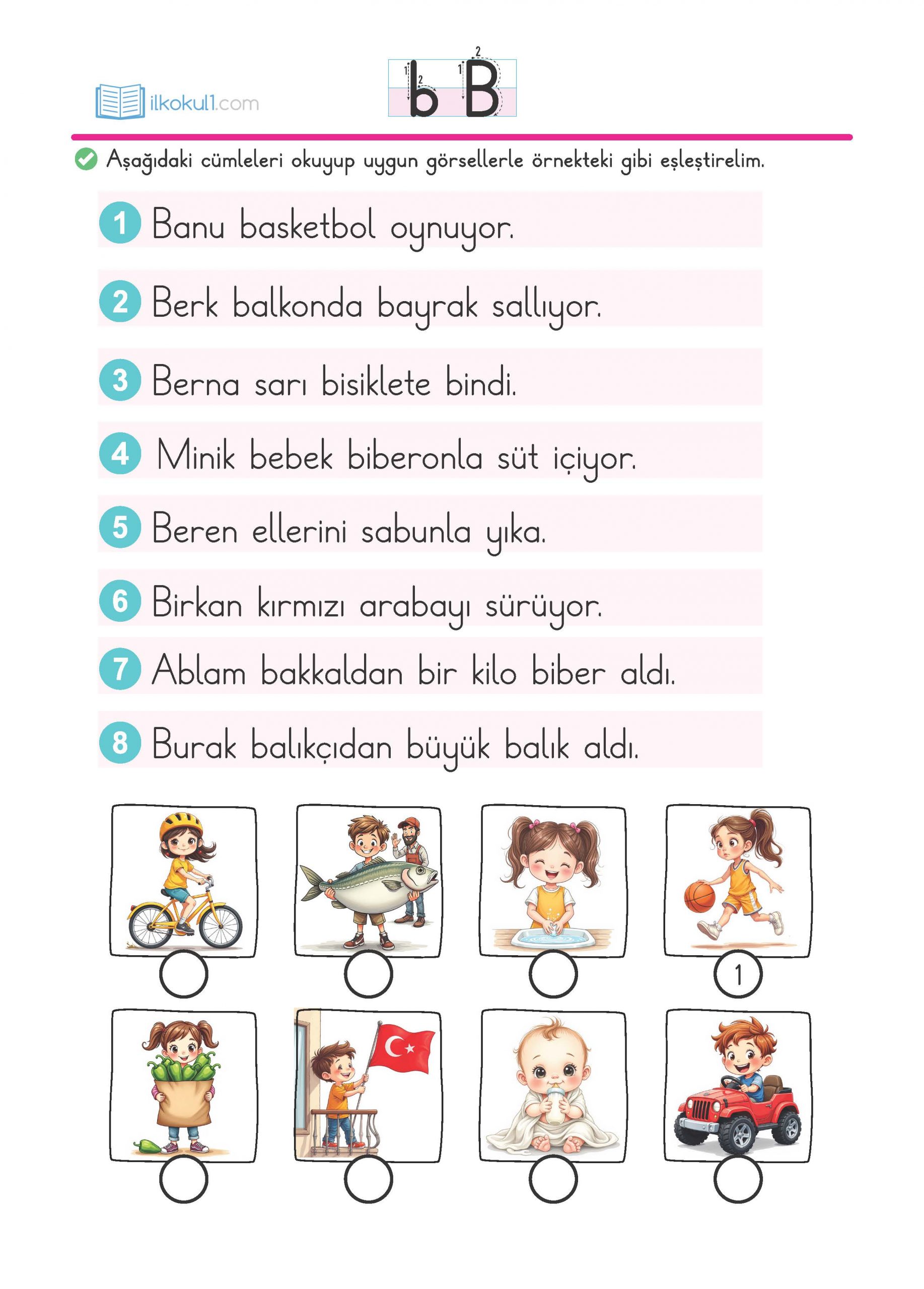- Cümleleri okuyup görsellerle eşleştirelim:
