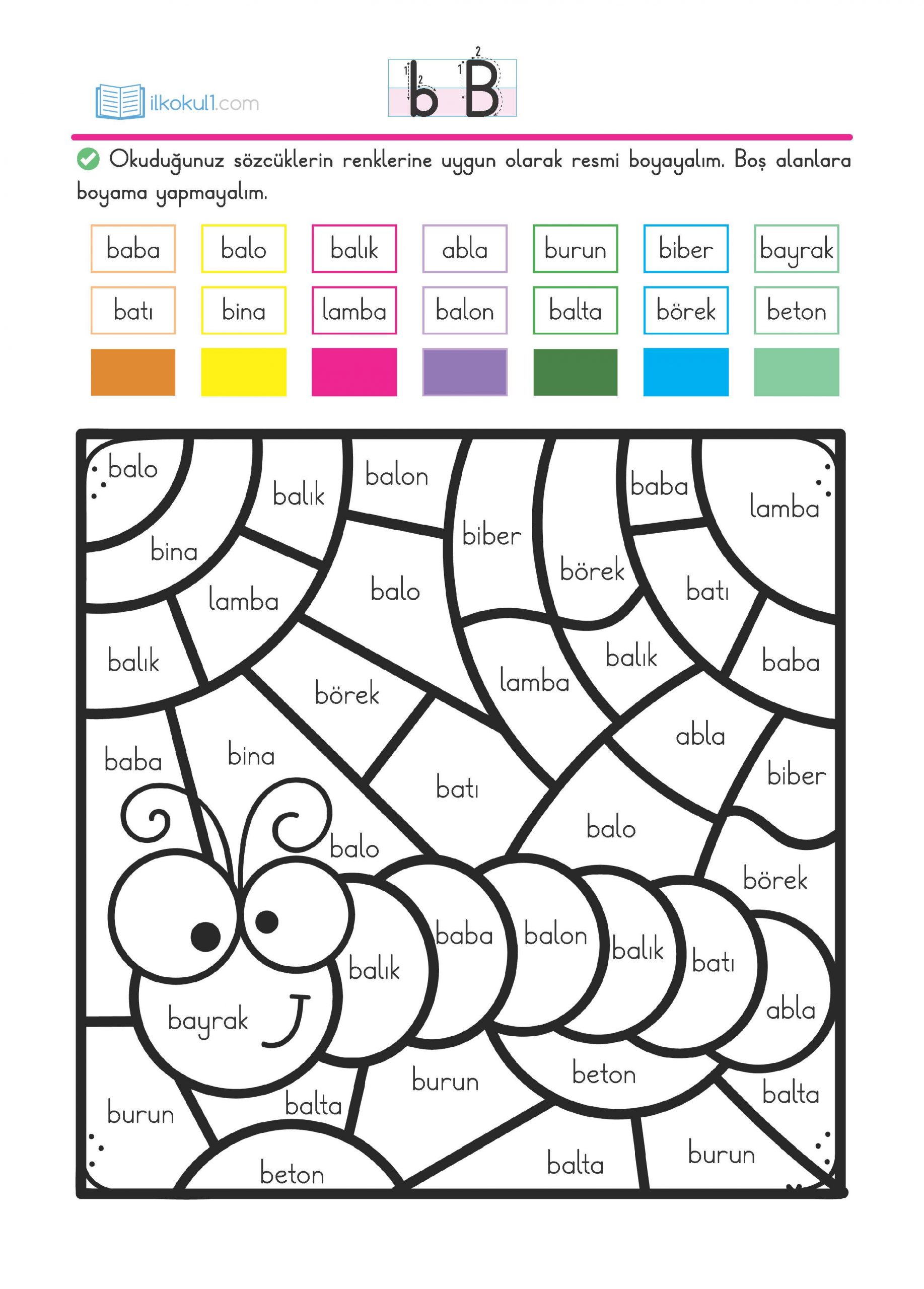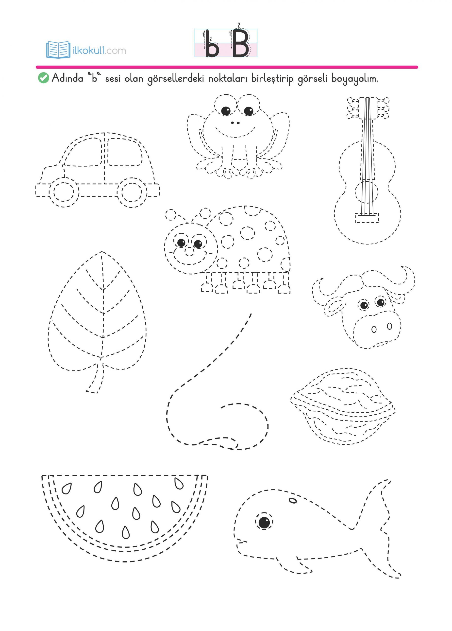 - Adında “b” sesi olan görsellerdeki noktaları birleştirip görseli boyayalım.