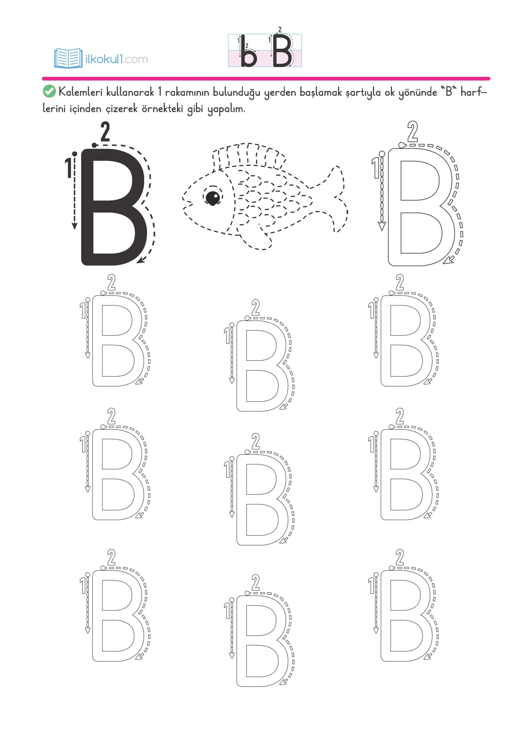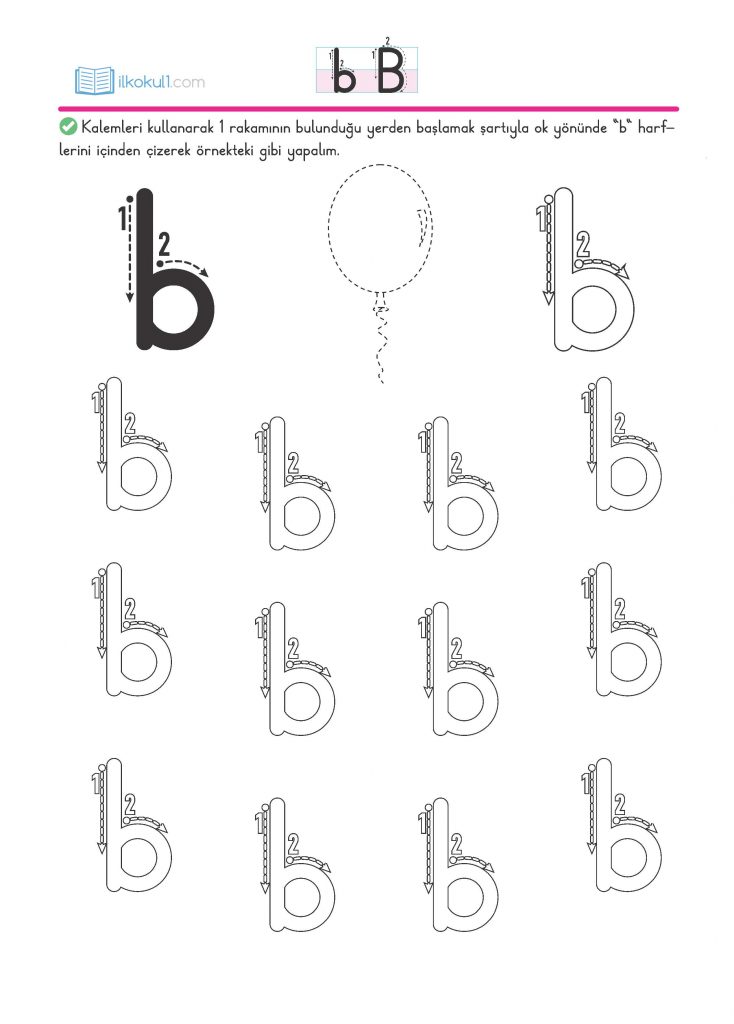 - Kalemle “b” harflerini ok yönünde içinden çizelim.