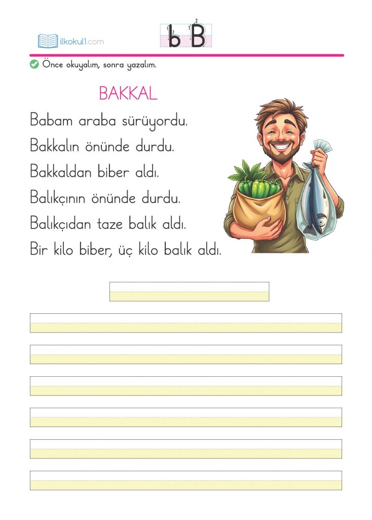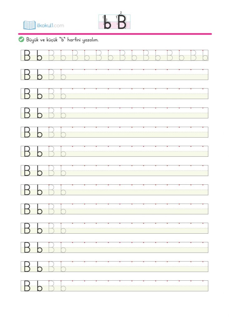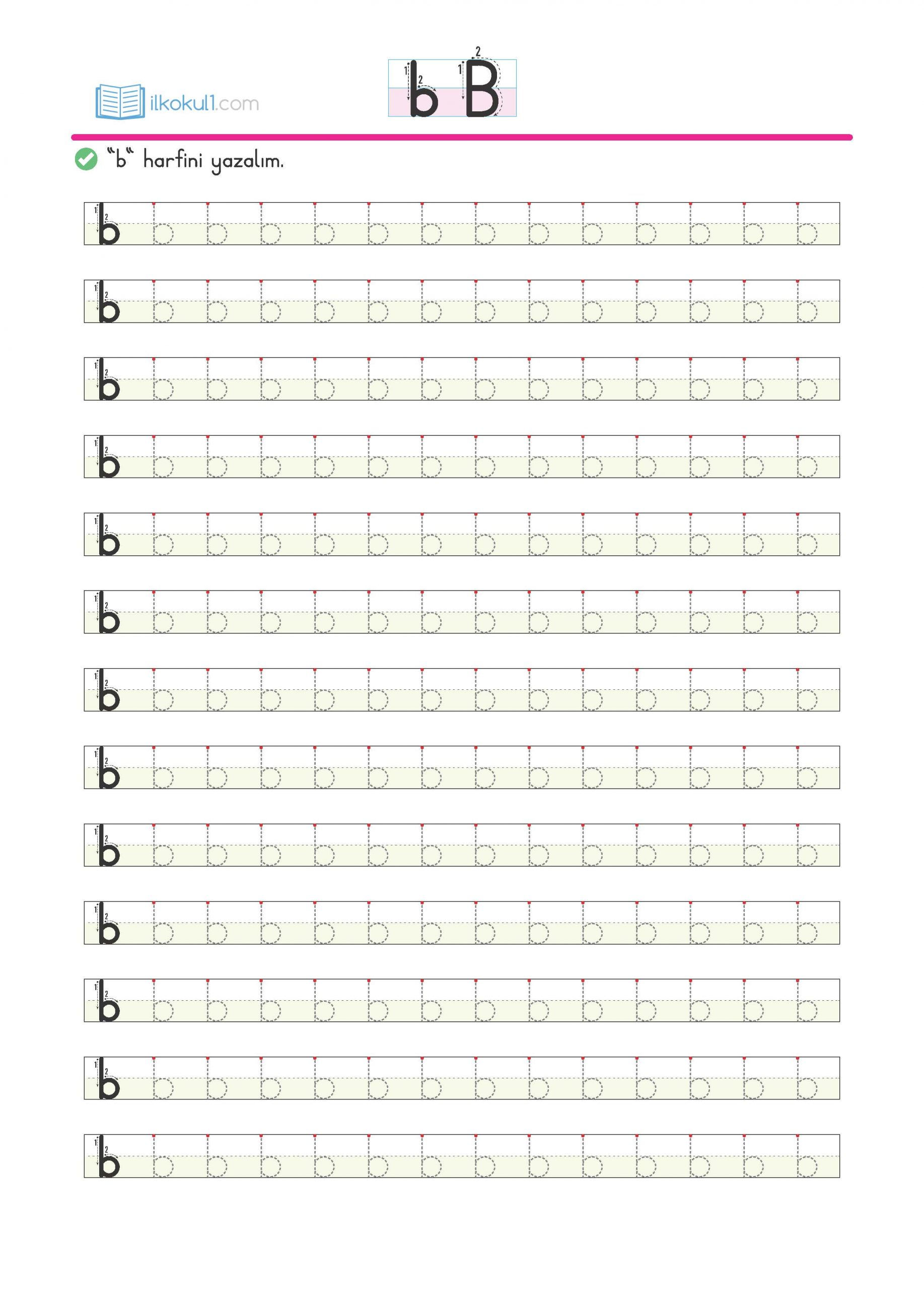 - Aşağıdaki satır dizgelerine “b” harfini yazalım.