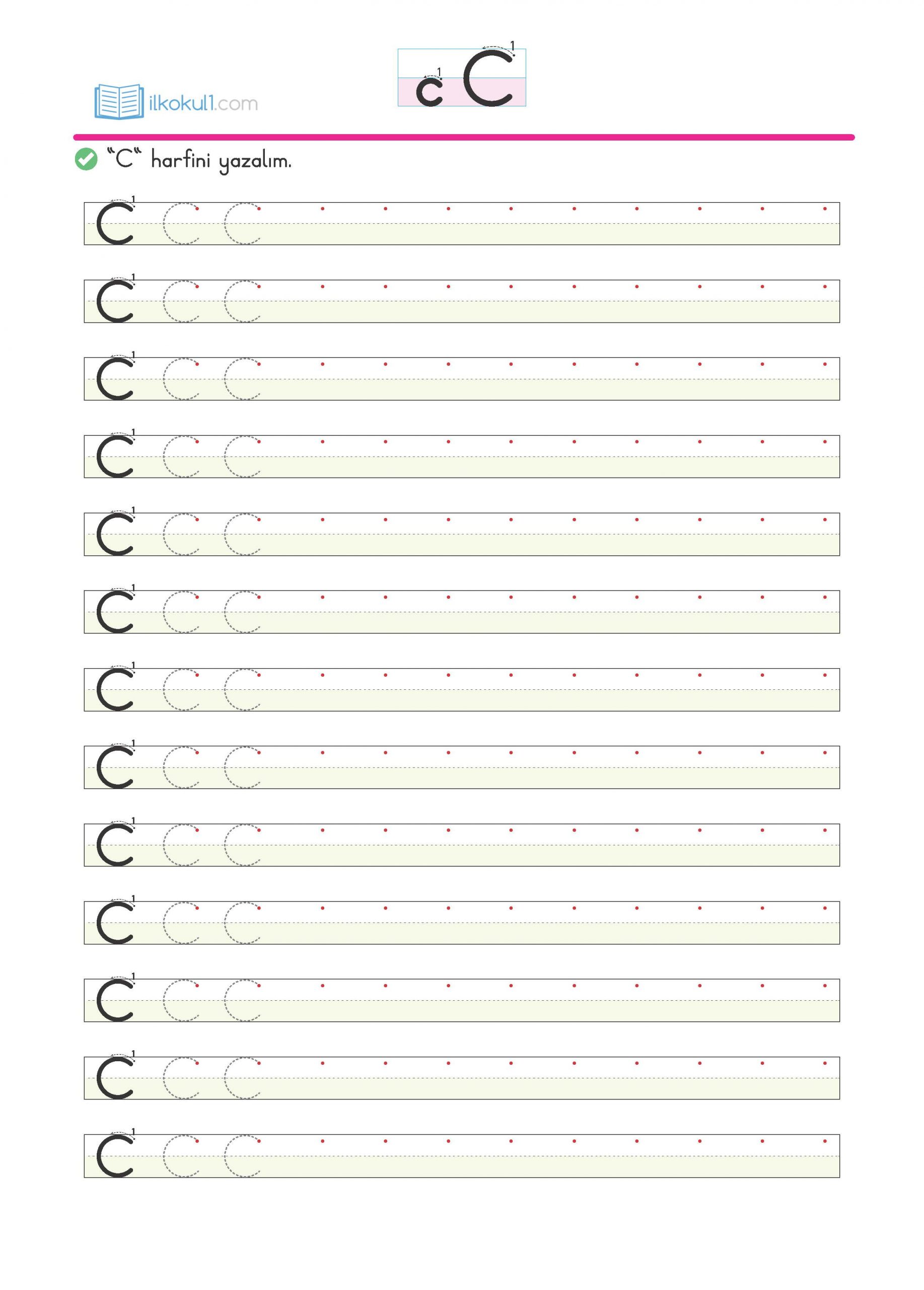 - Kalemle “c” harflerini ok yönünde içinden çizelim.