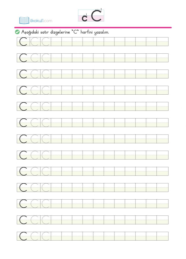- Aşağıdaki satır dizgelerine “c” harfini yazalım.
