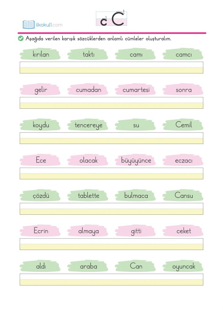 - Adında “c” sesi olan varlıkları işaretleyelim.