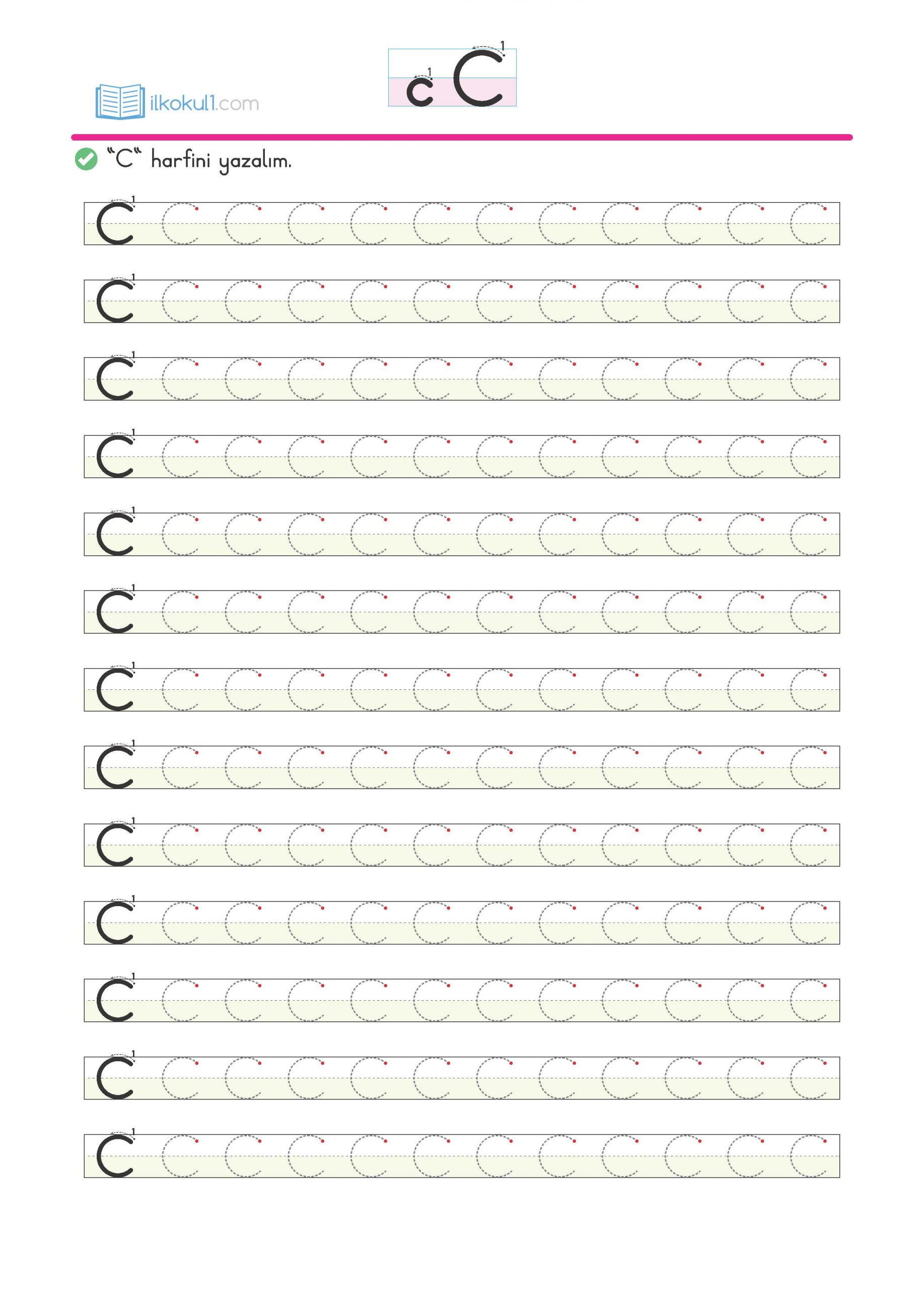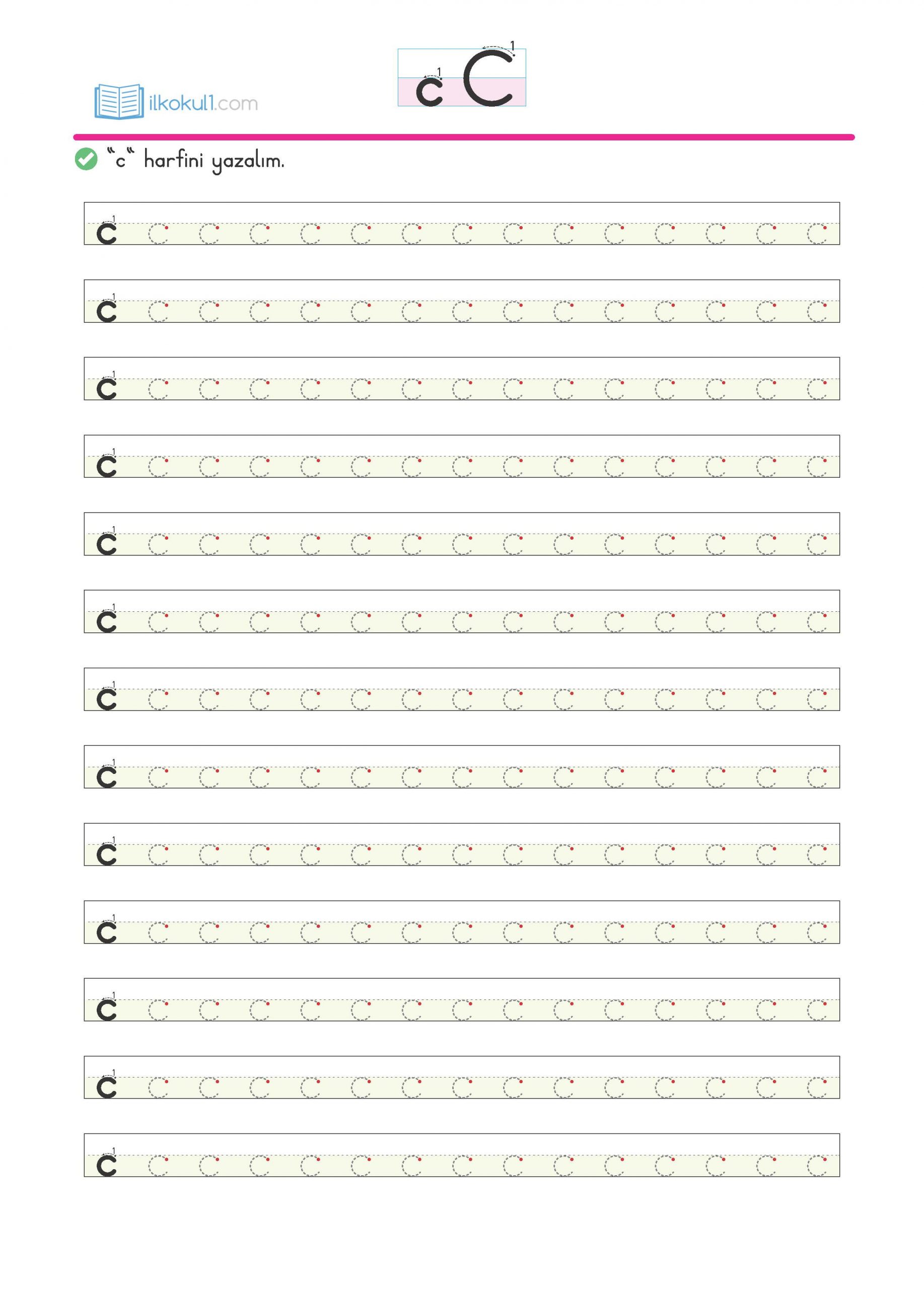 - Kalemle “c” harflerini ok yönünde içinden çizelim.