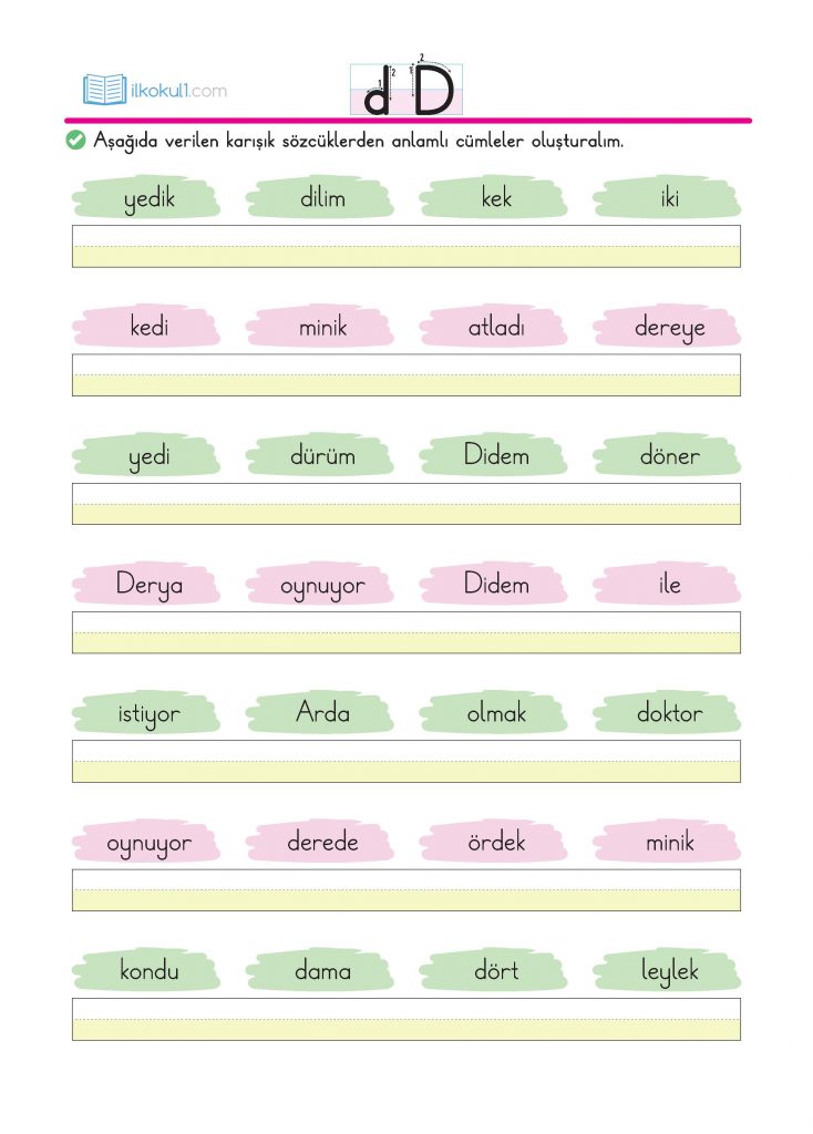 - Adının başında “D, d” sesi olan varlıkları işaretleyelim.