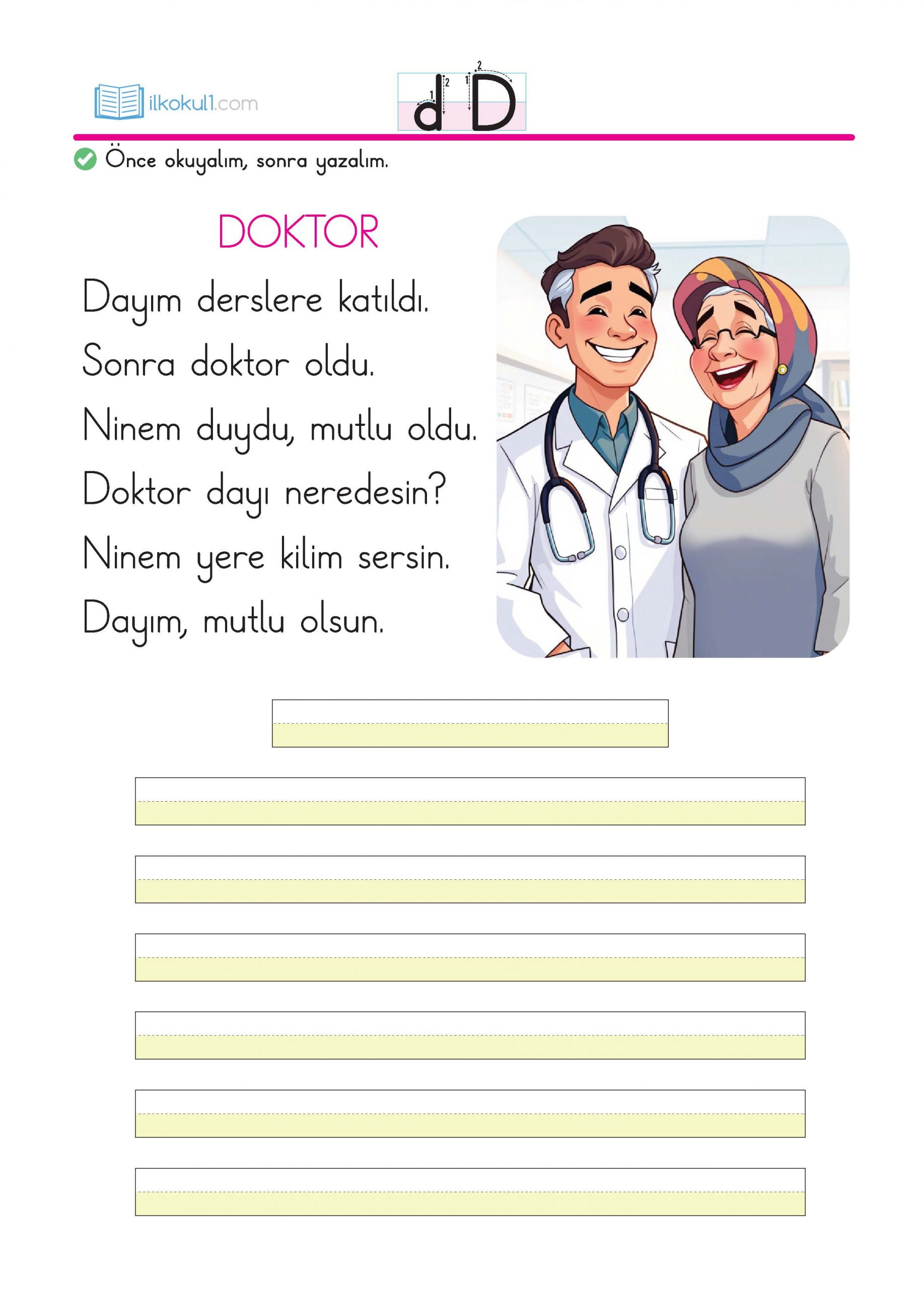 - Kalemle “d” harflerini ok yönünde içinden çizelim.