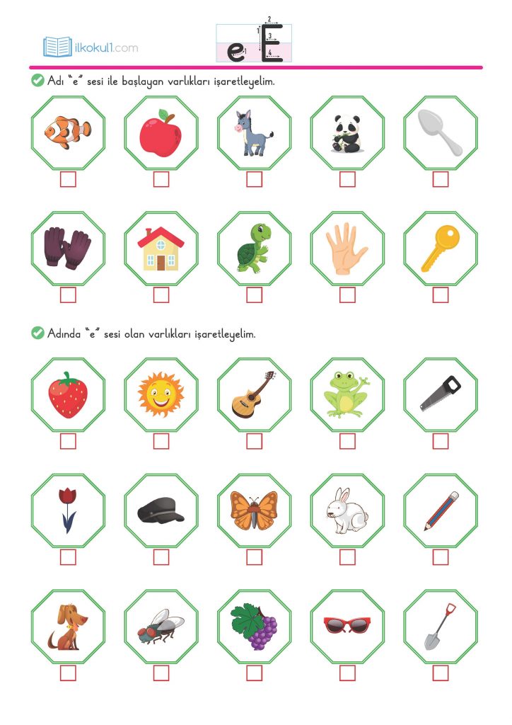 İşte “e” sesi için özgün etkinliklerimizin içerikleri: