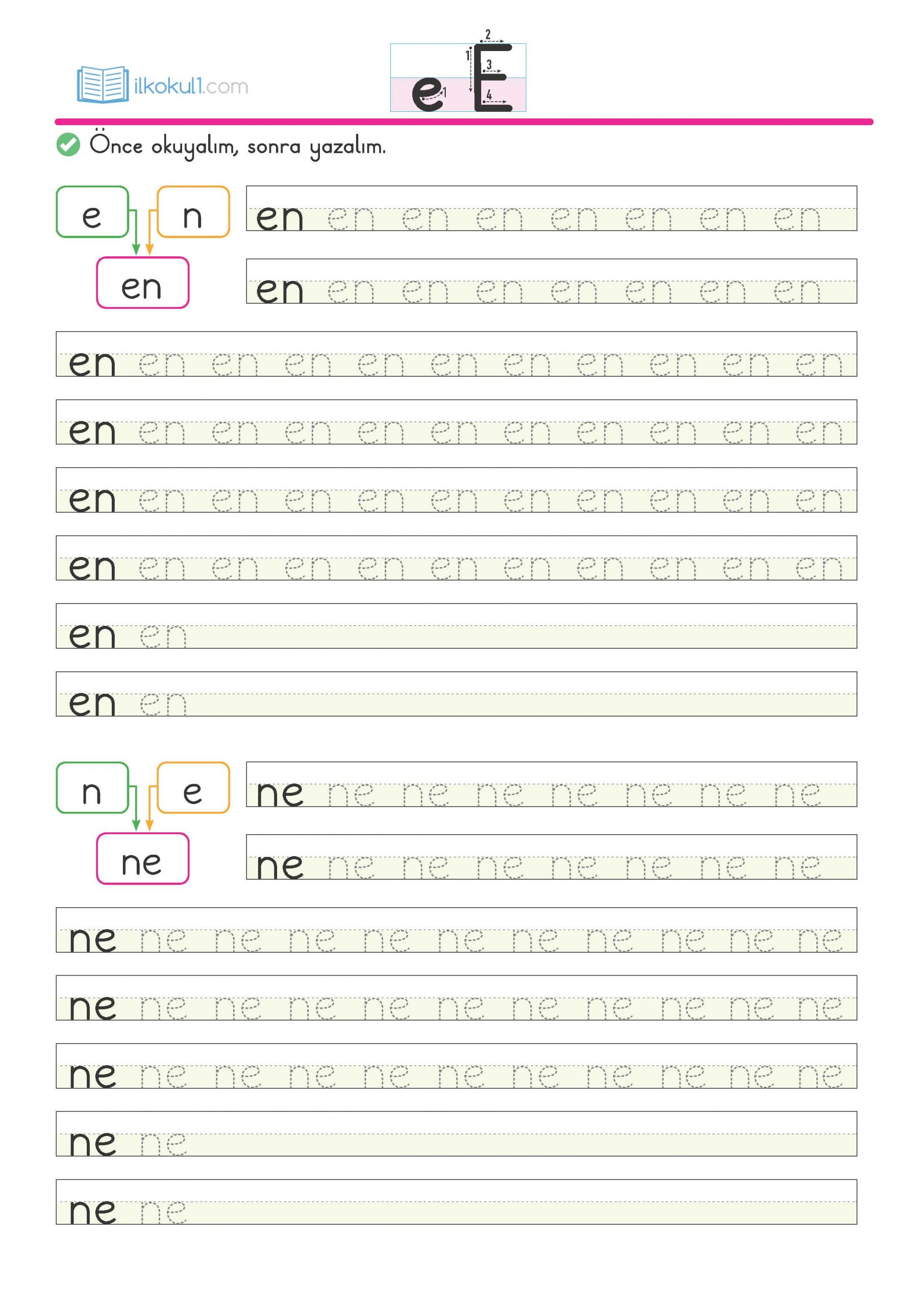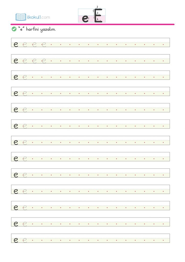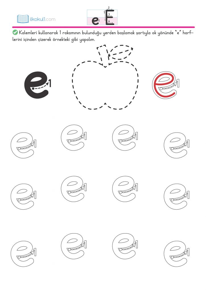 - Kalemle “e” harflerini ok yönünde içinden çizelim.