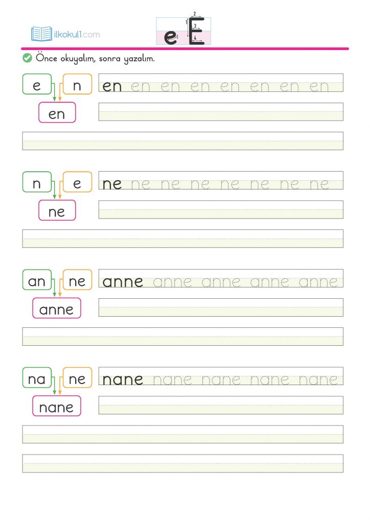 - Aşağıdaki satır dizgelerine “e” harfini yazalım.