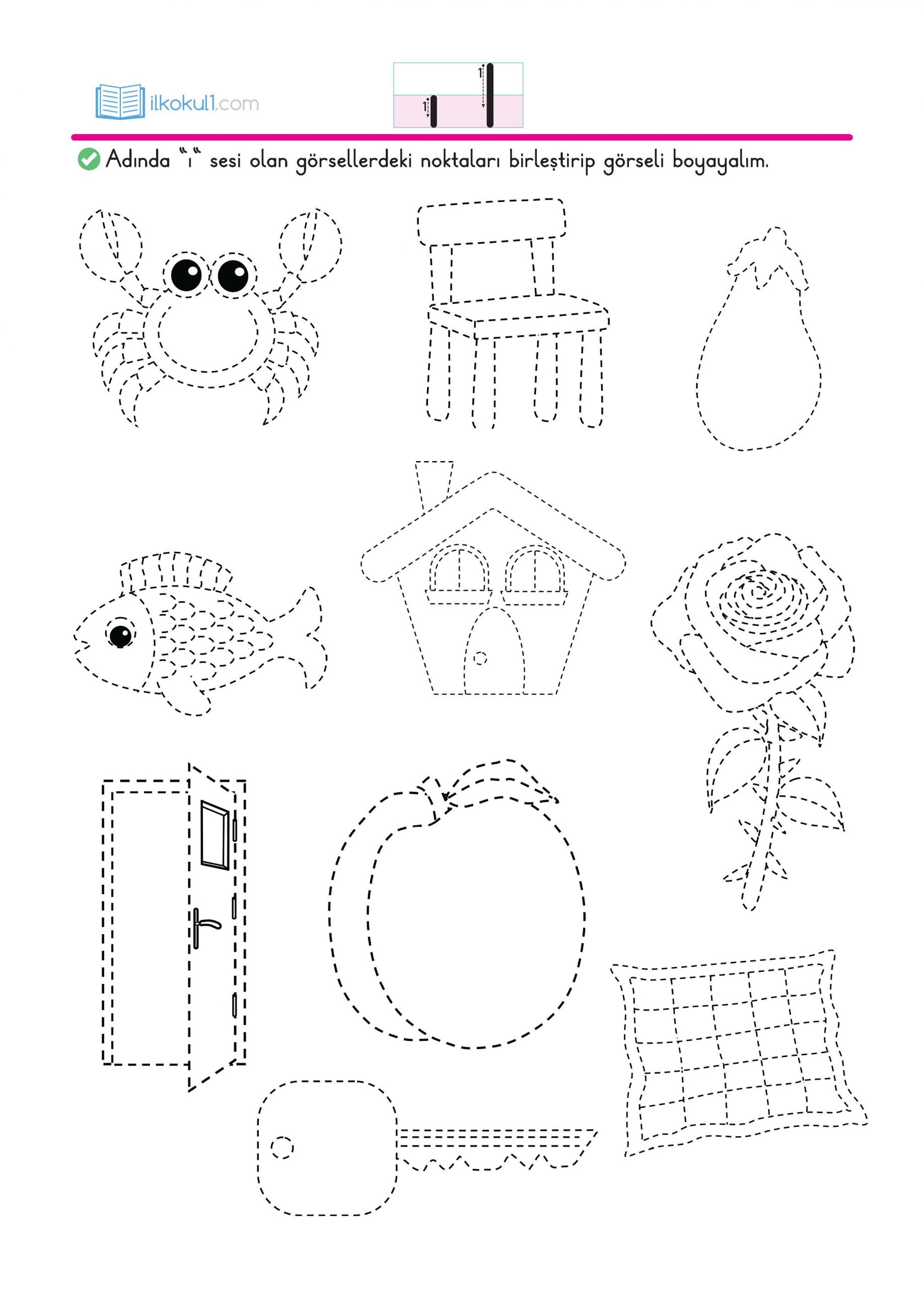 - Adında “ı” sesi olan görsellerdeki noktaları birleştirip görseli boyayalım.
