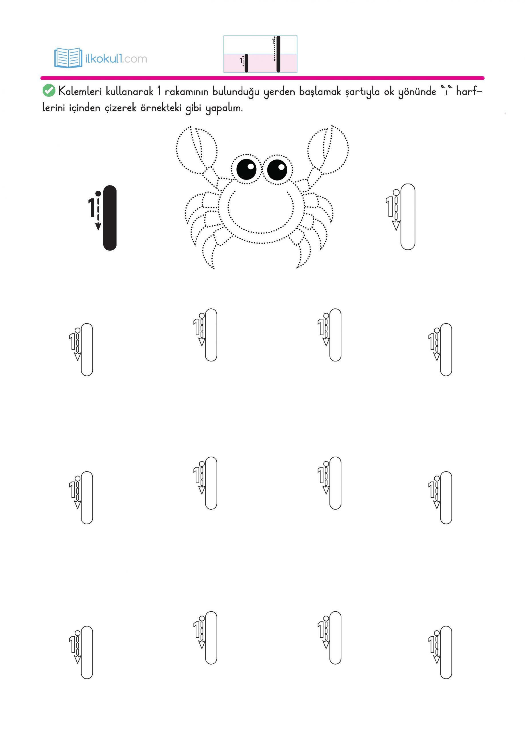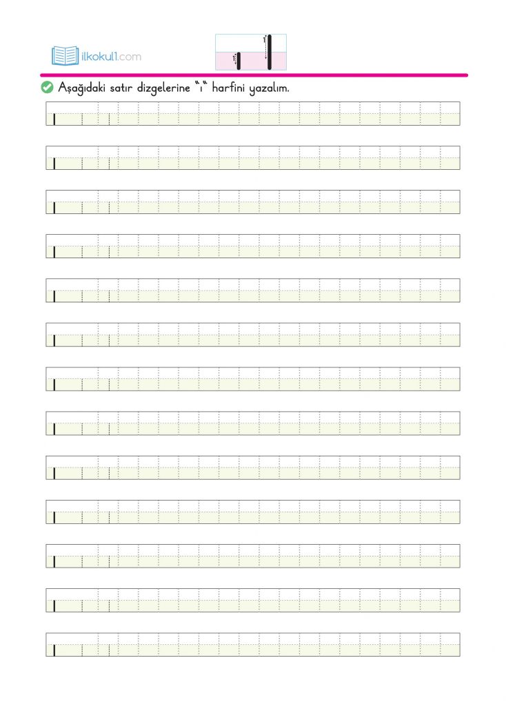 - Kalemle “ı” harflerini ok yönünde içinden çizelim.