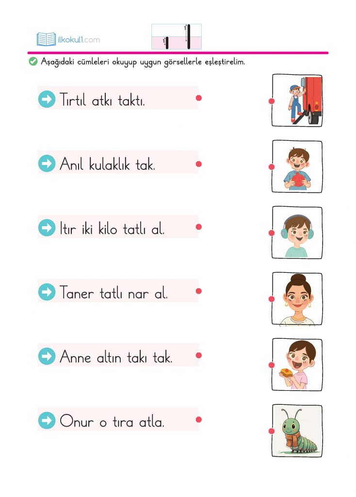 - Cümleleri okuyup görsellerle eşleştirelim: