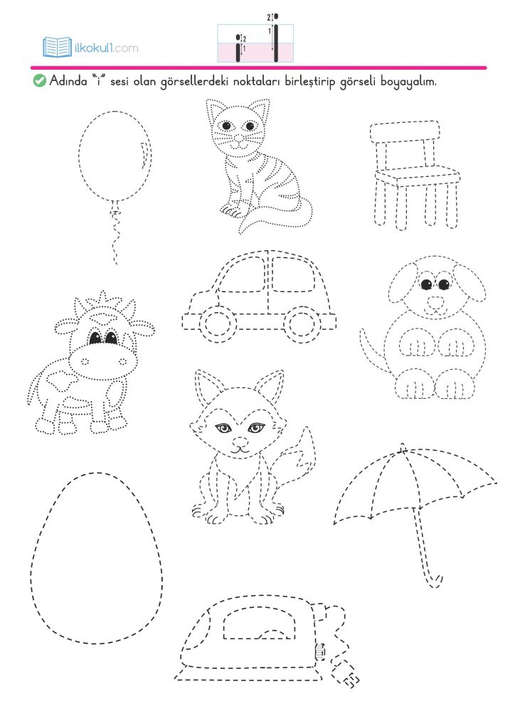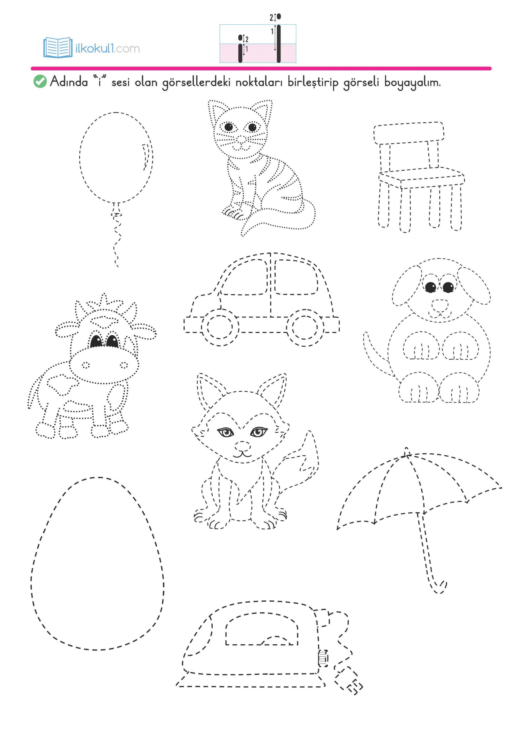 - Adında “i” sesi olan görsellerdeki noktaları birleştirip görseli boyayalım.