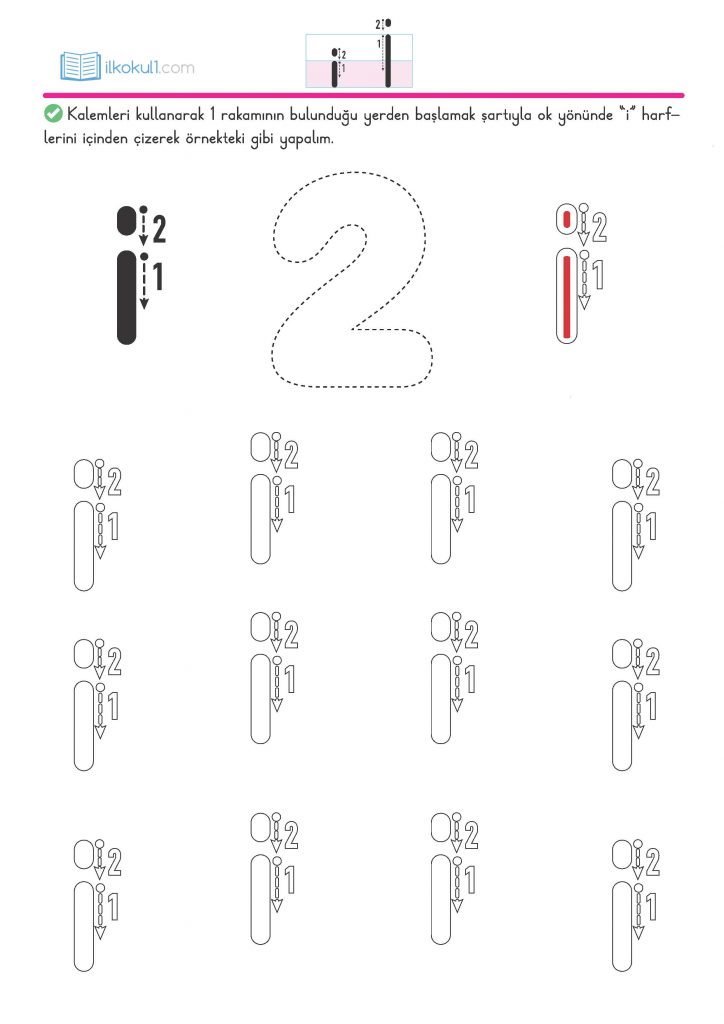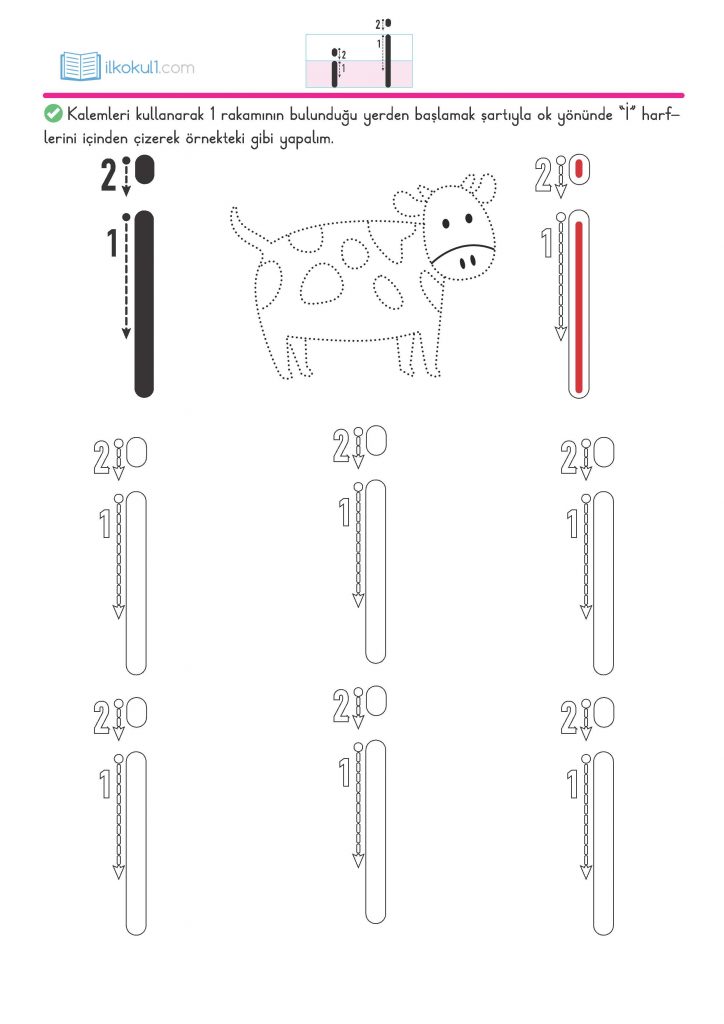 - Kalemle “i” harflerini ok yönünde içinden çizelim.