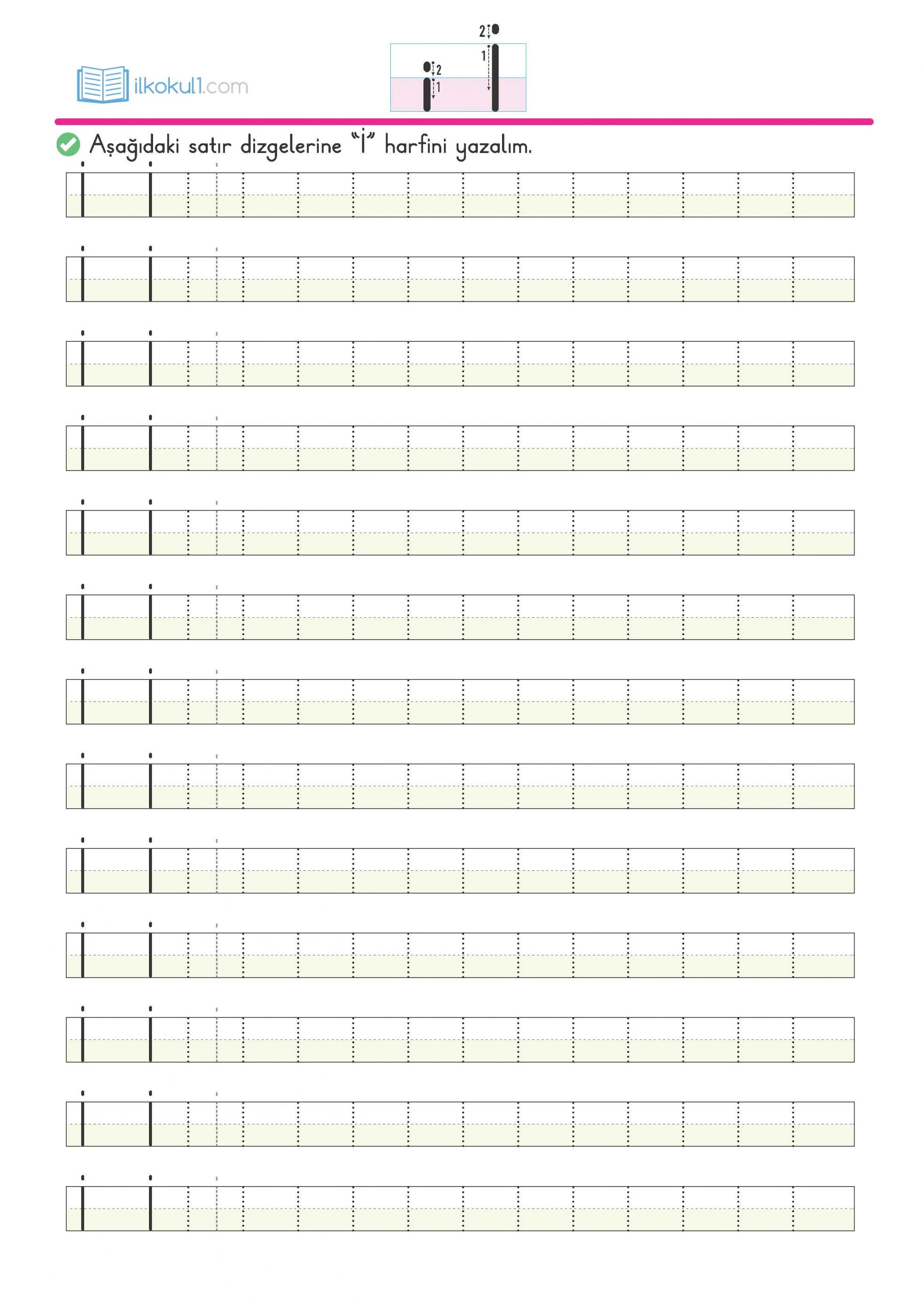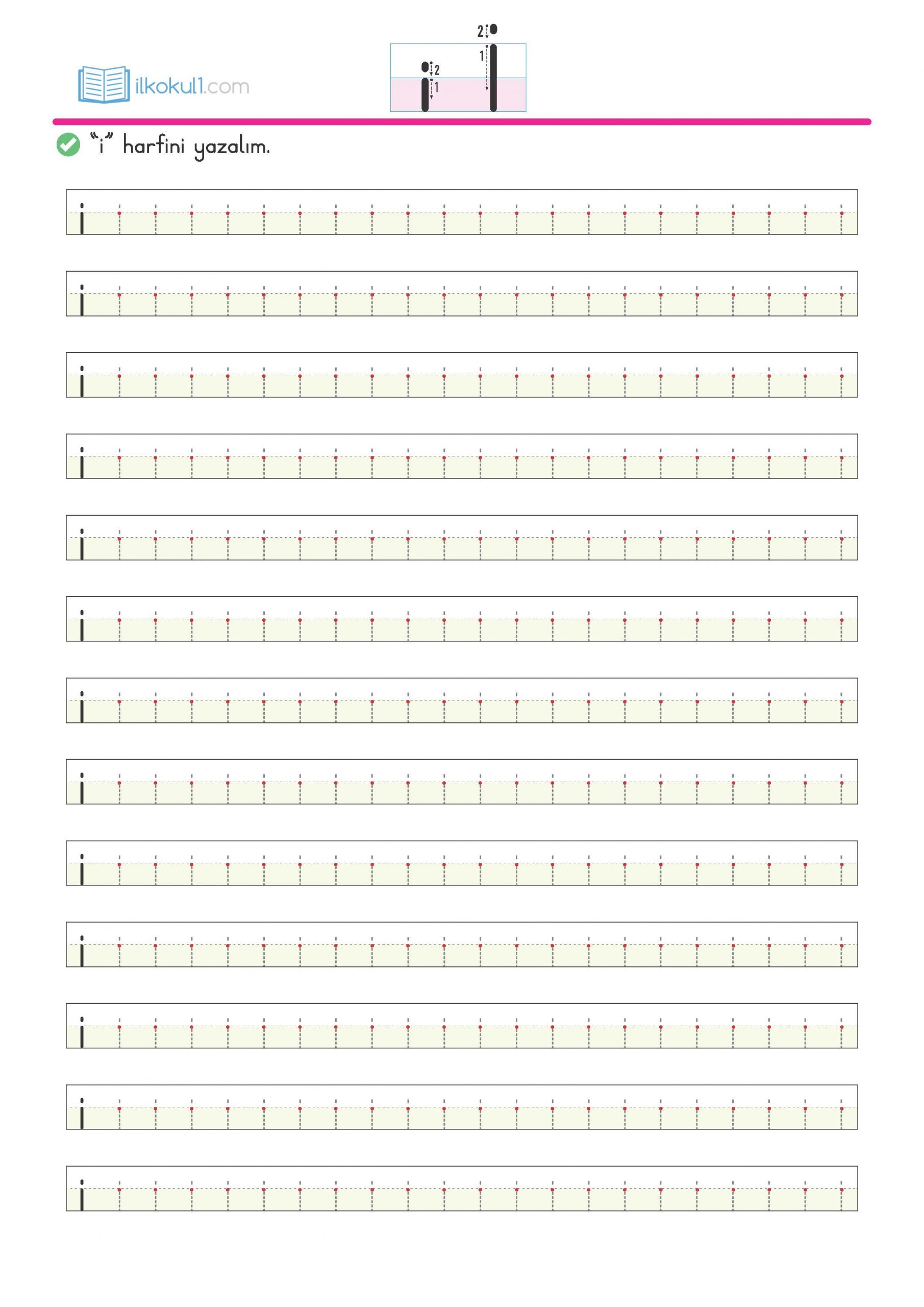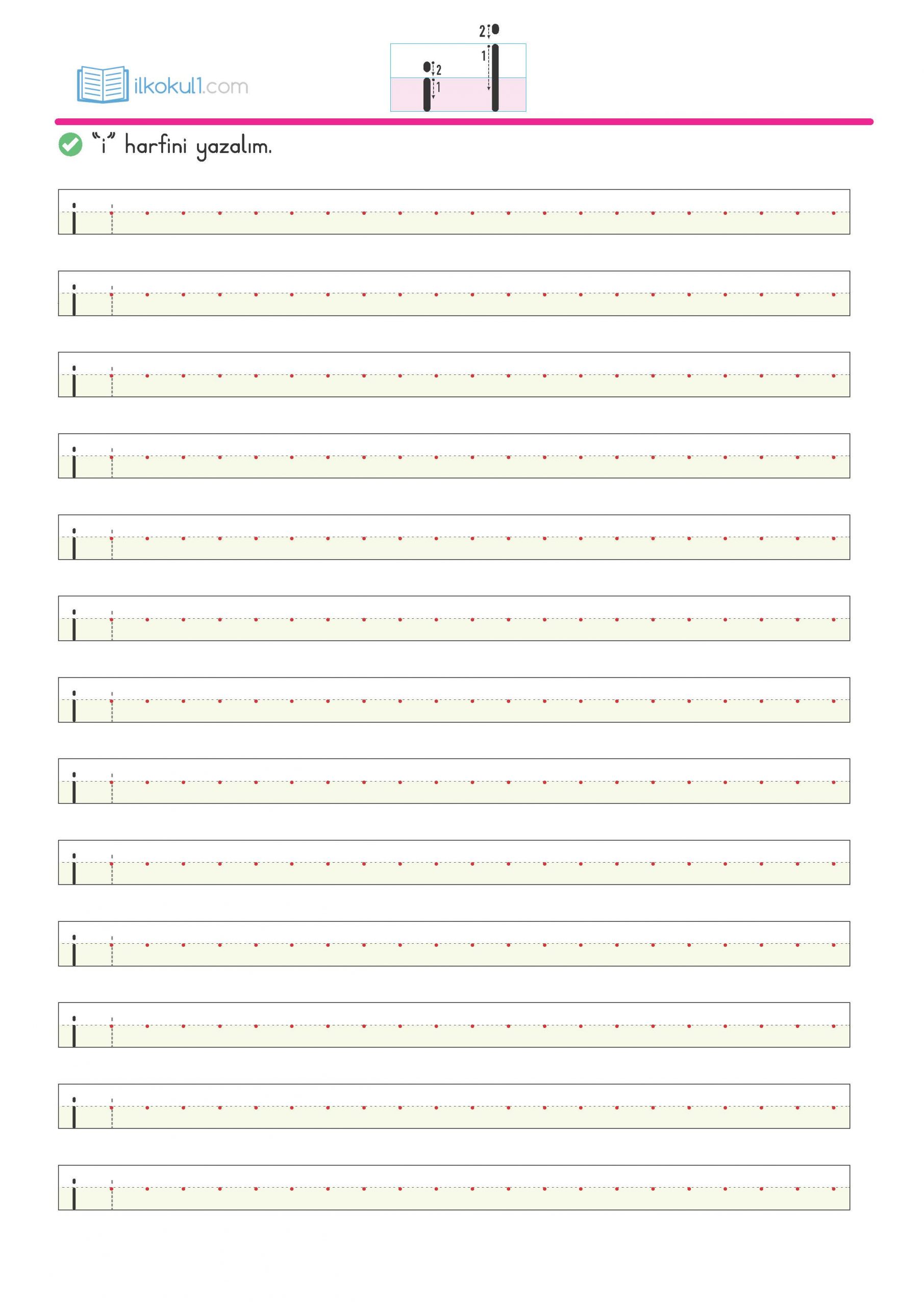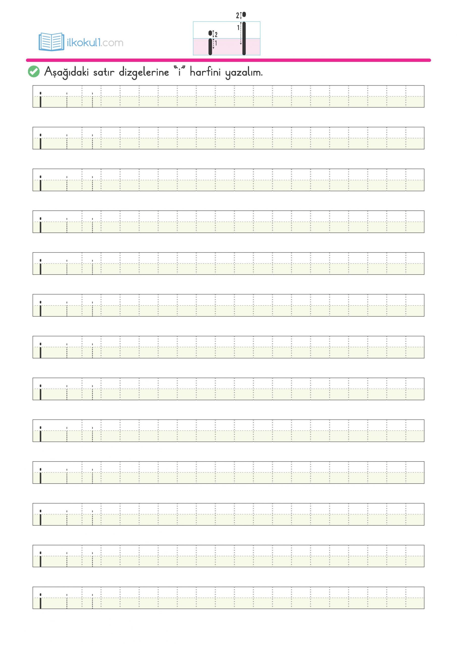 - Aşağıdaki satır dizgelerine “i” harfini yazalım.