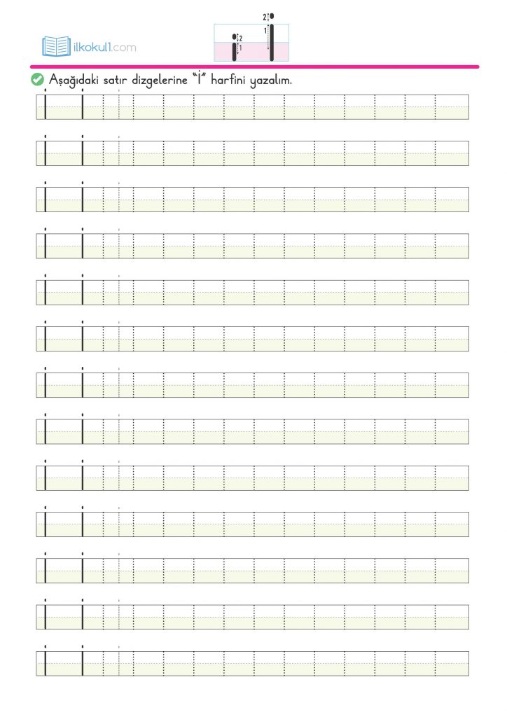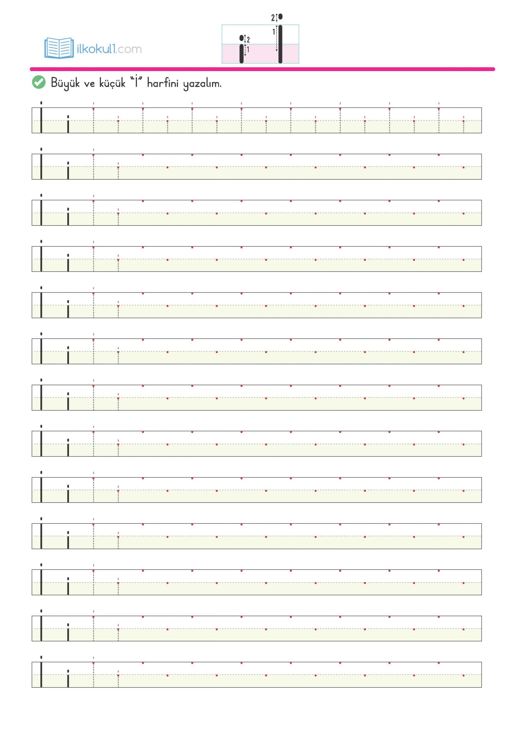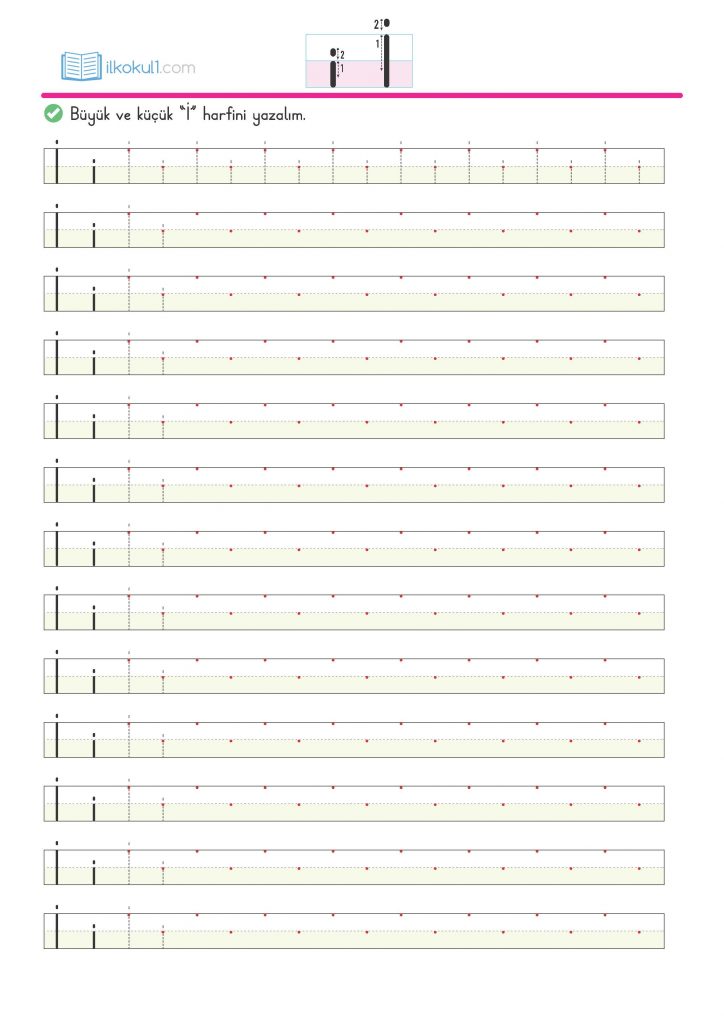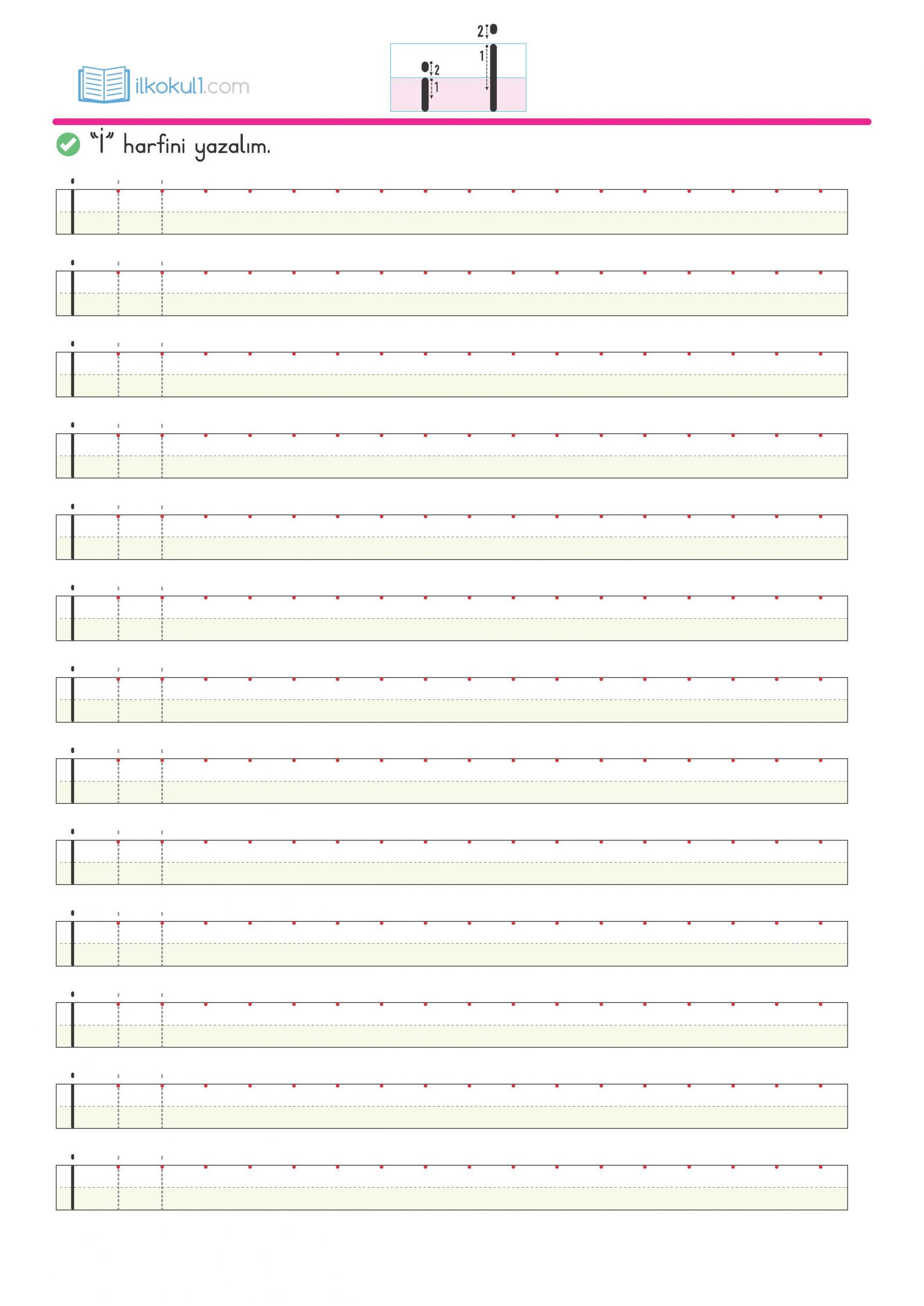 - Aşağıdaki satır dizgelerine “i” harfini yazalım.