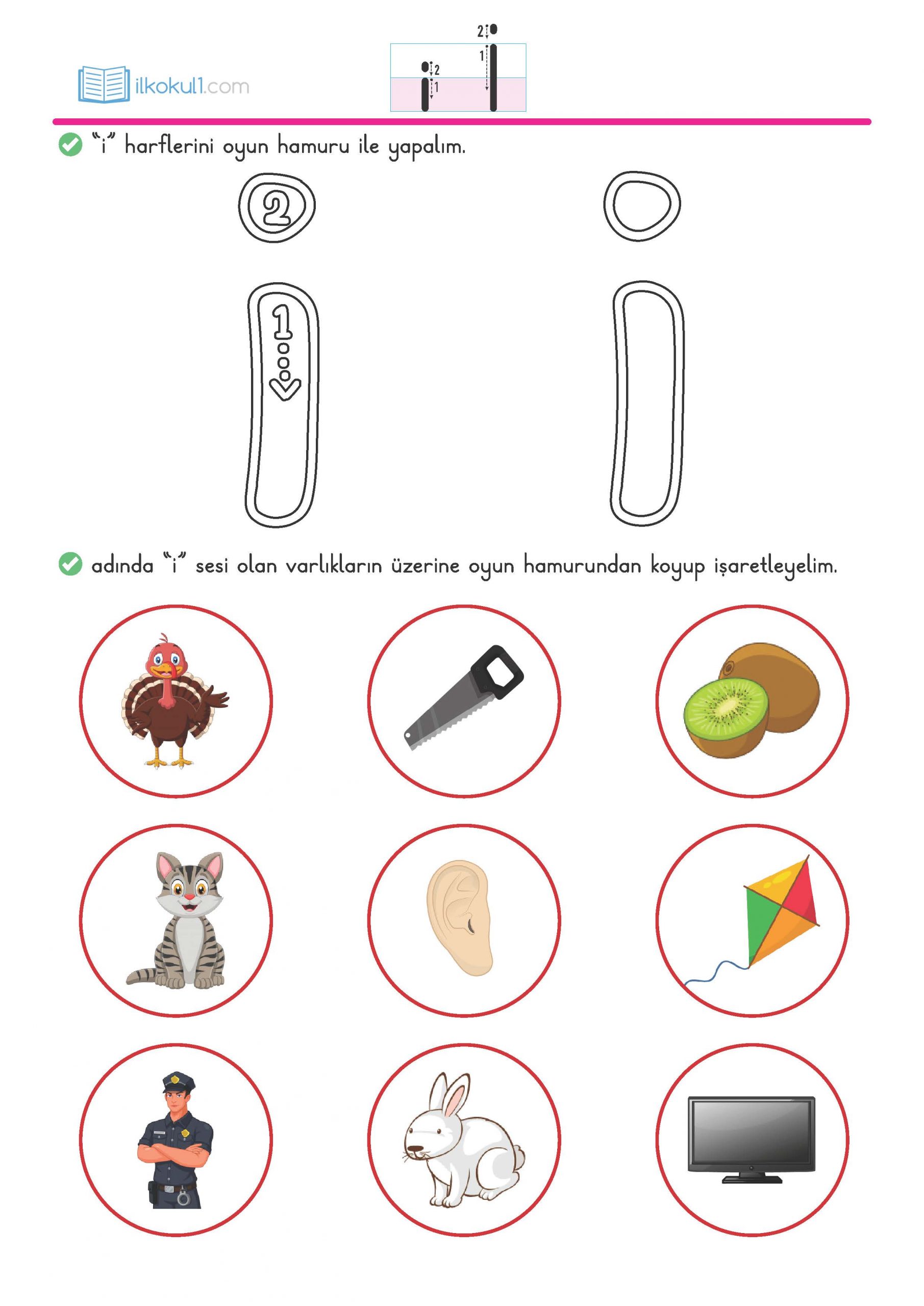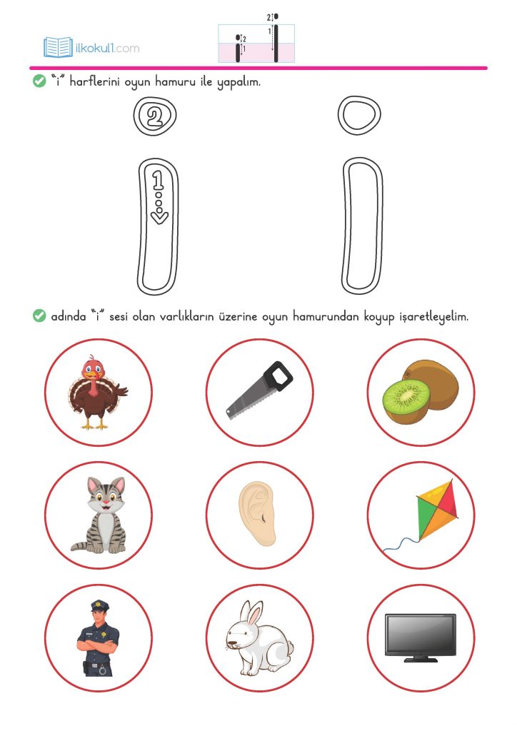 - Adında “i” sesi olan varlıkların üzerine oyun hamurundan koyup işaretleyelim.
