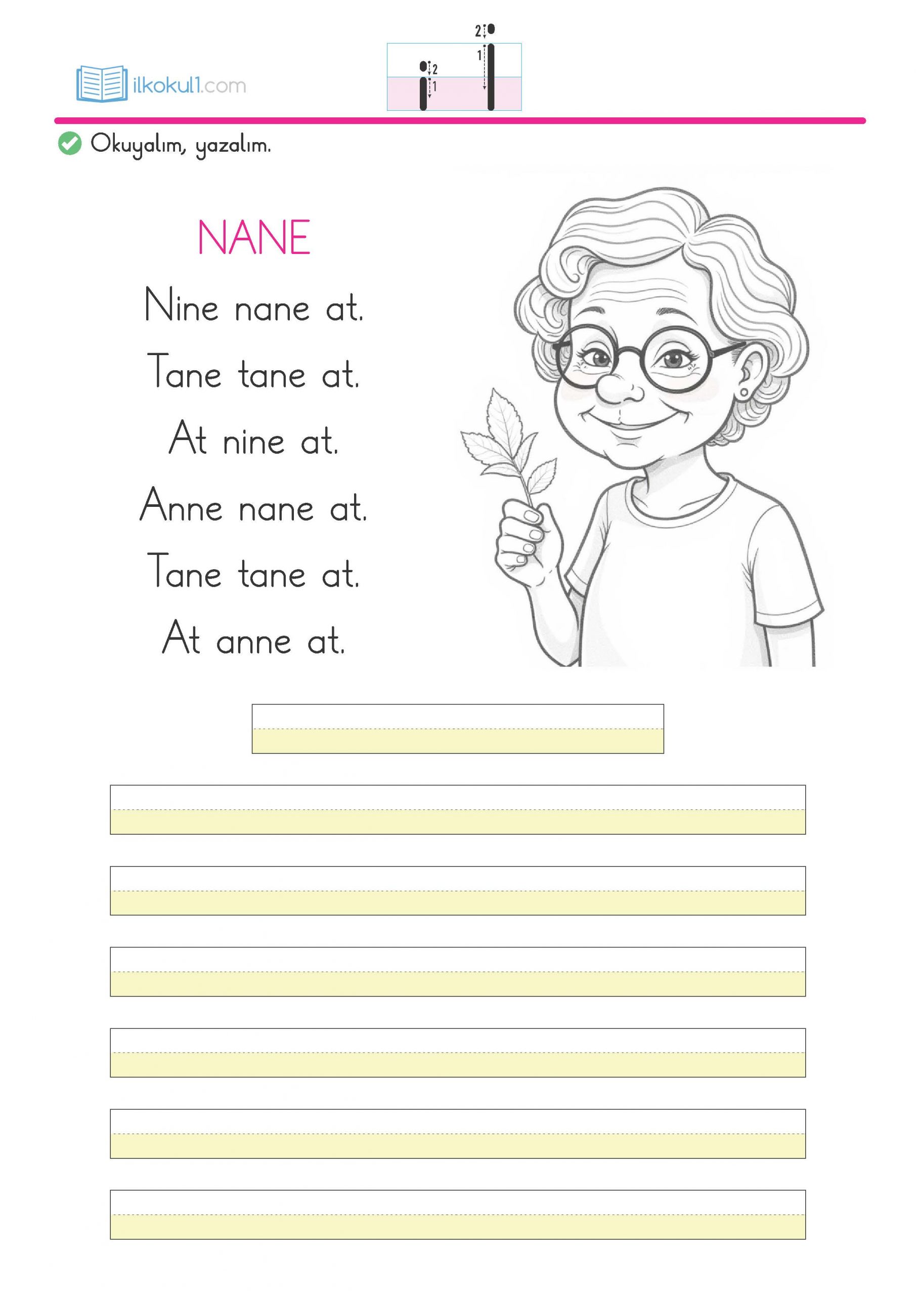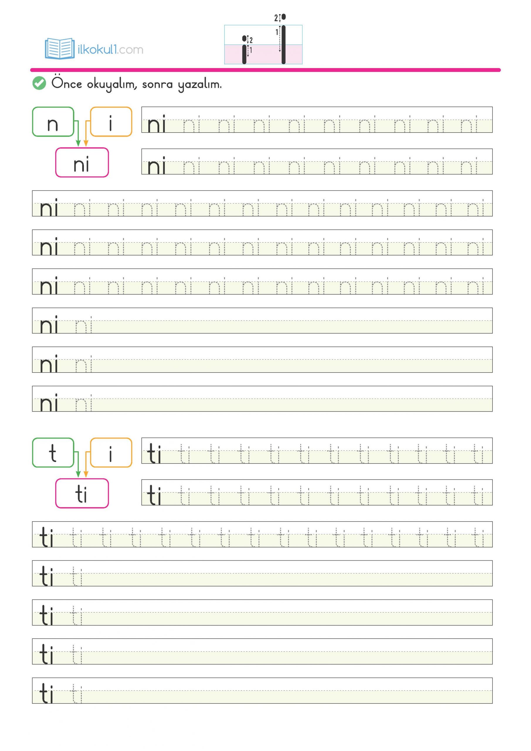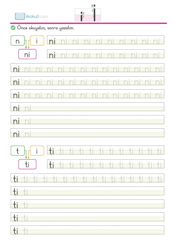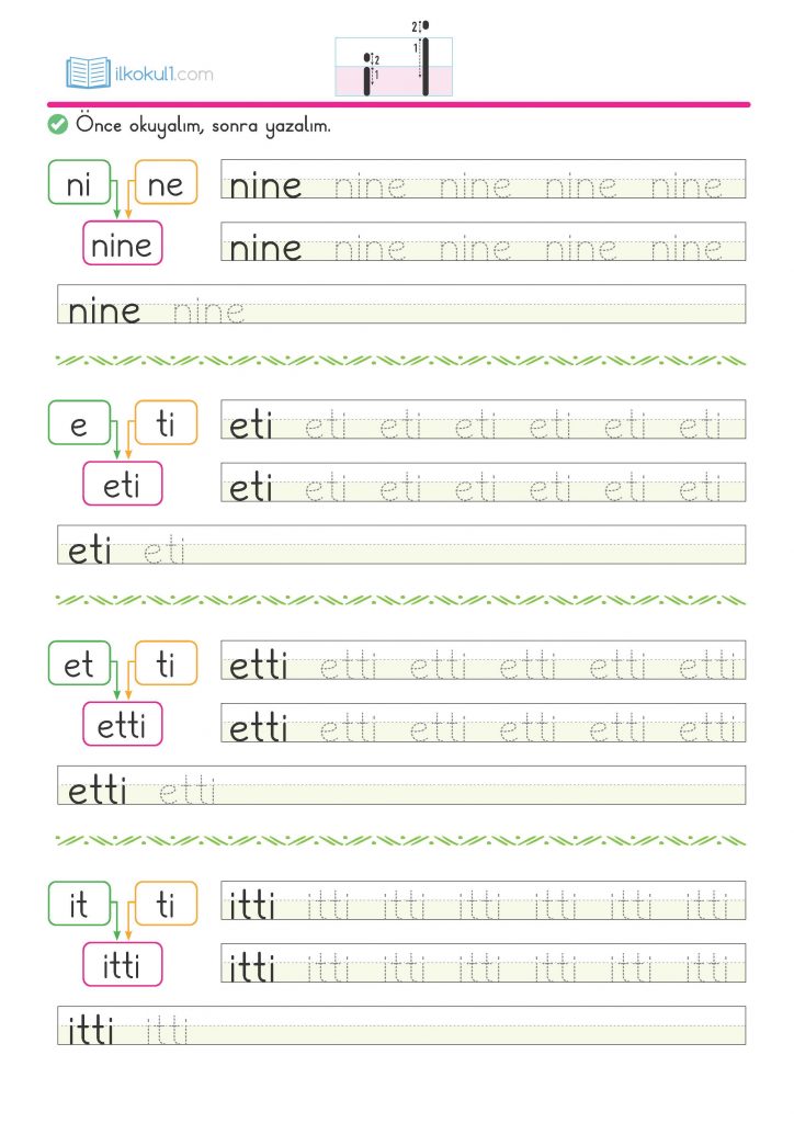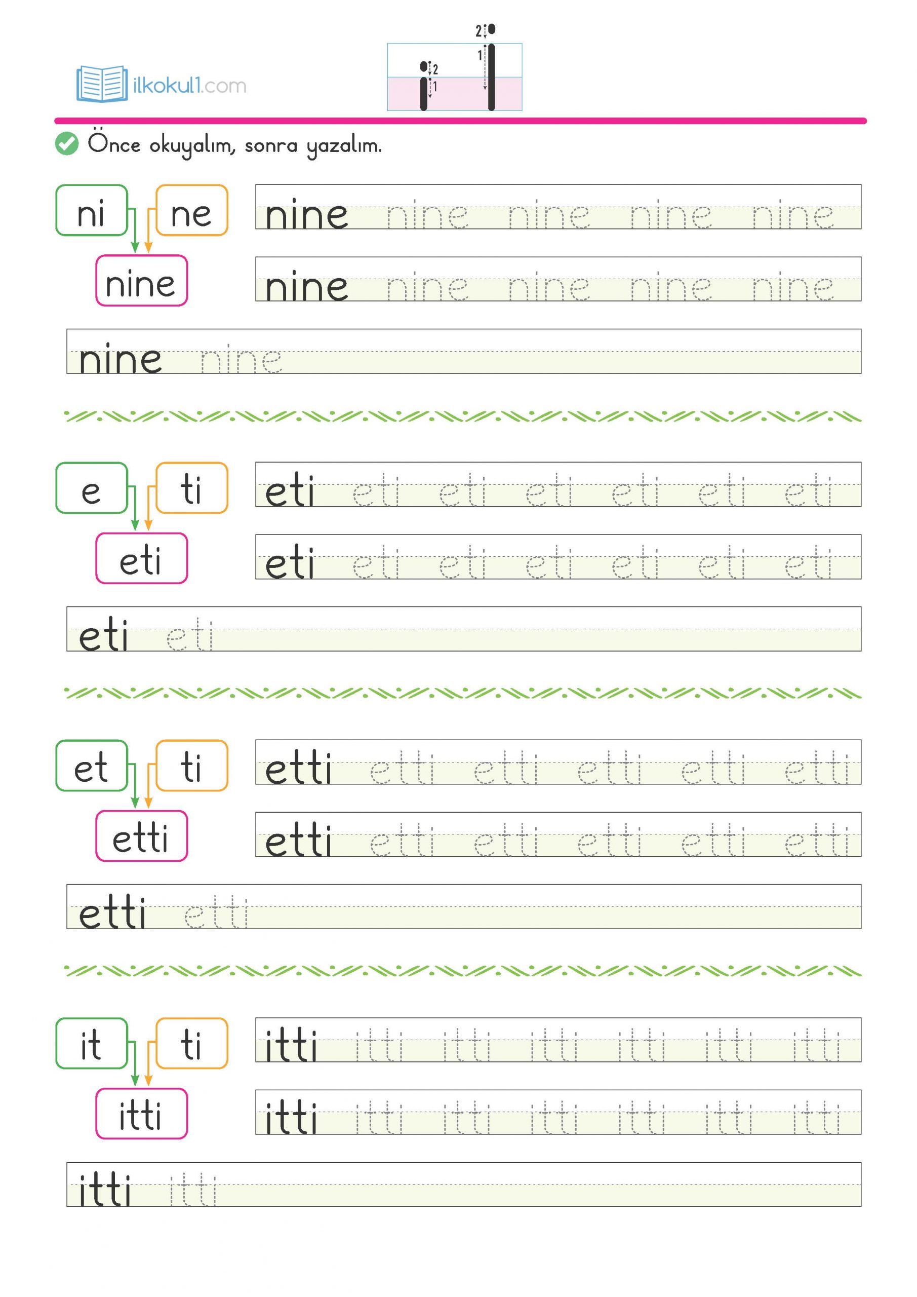 - “nine” ve “eti” gibi kelimeleri okuyup yazalım.