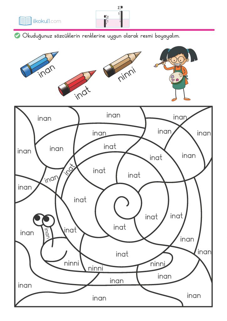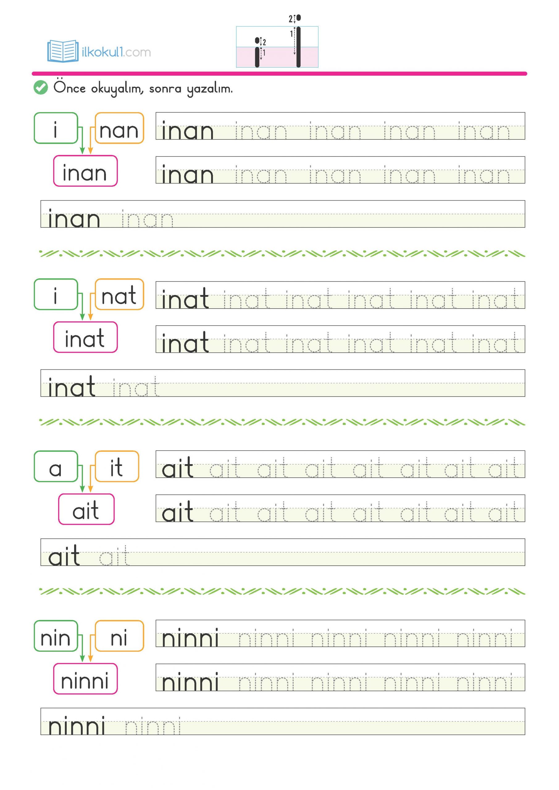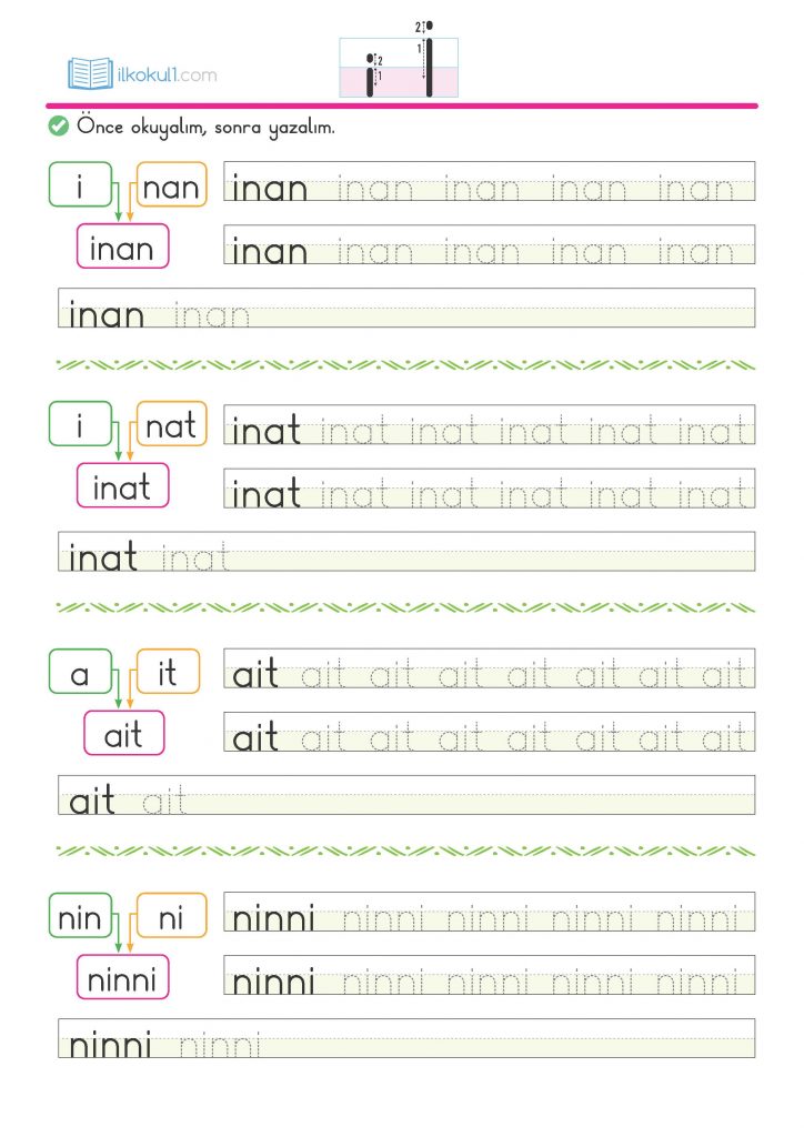 - “inan” ve “inat” gibi kelimeleri okuyup yazalım.