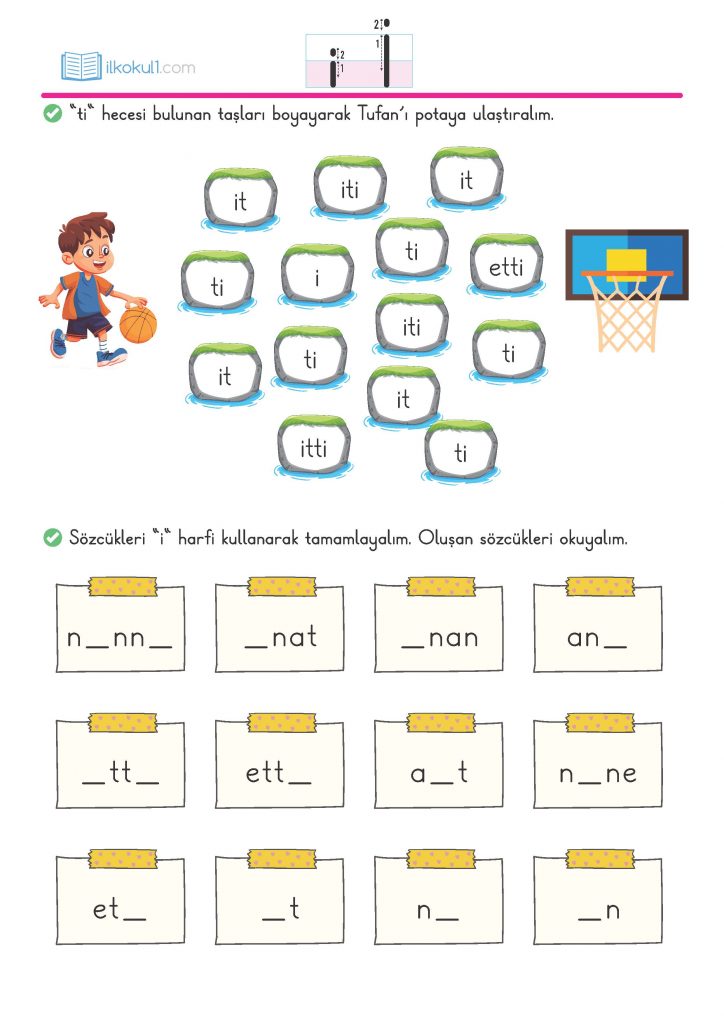 - Sözcükleri “i” harfi ile tamamlayıp okuyalım.
