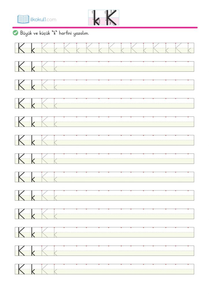 - Aşağıdaki satır dizgelerine “k” harfini yazalım.