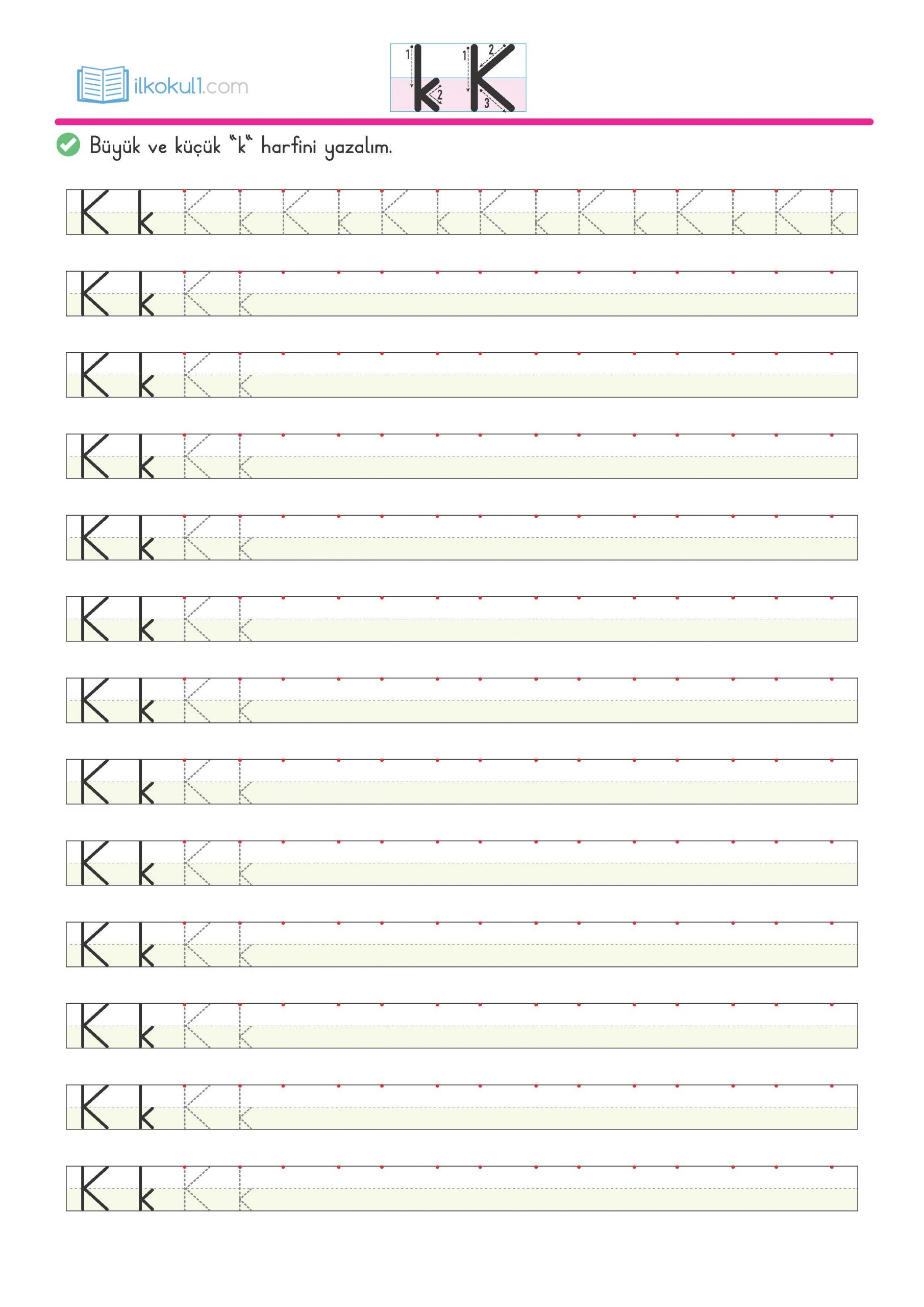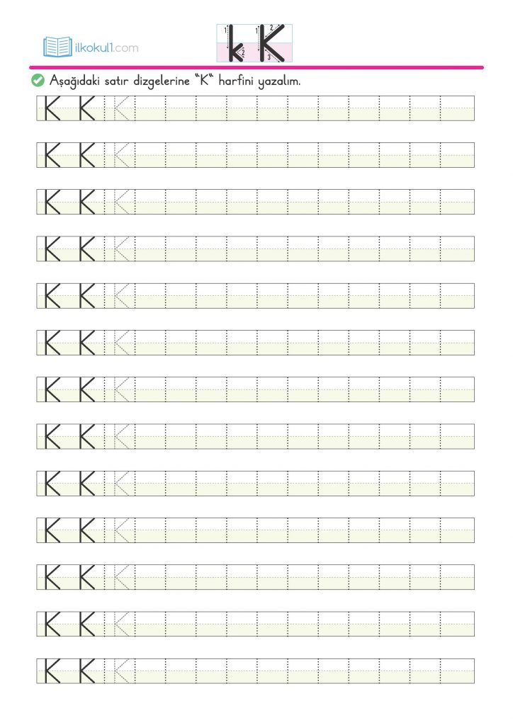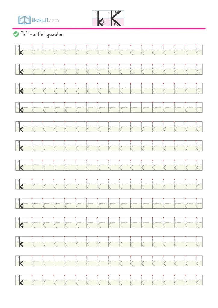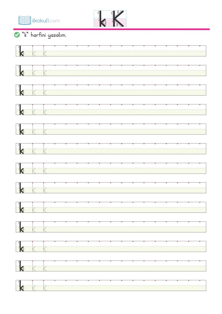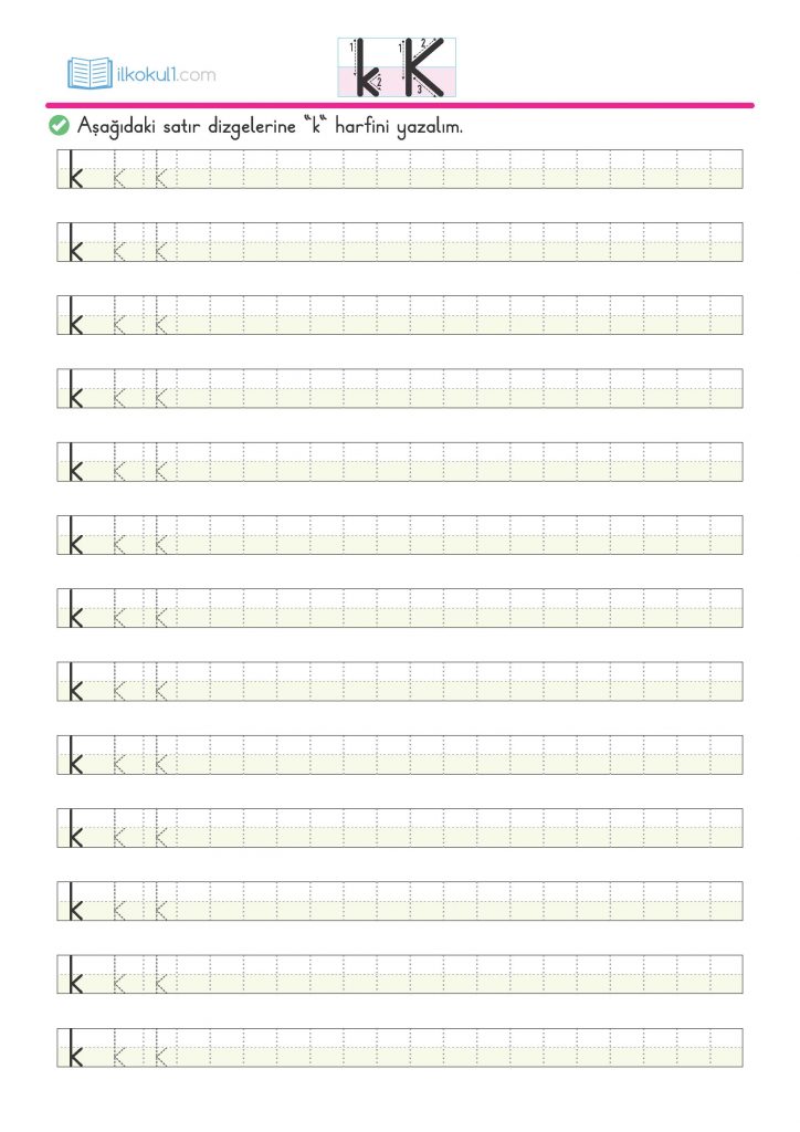 - Aşağıdaki satır dizgelerine “k” harfini yazalım.