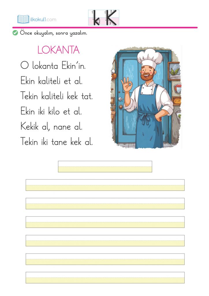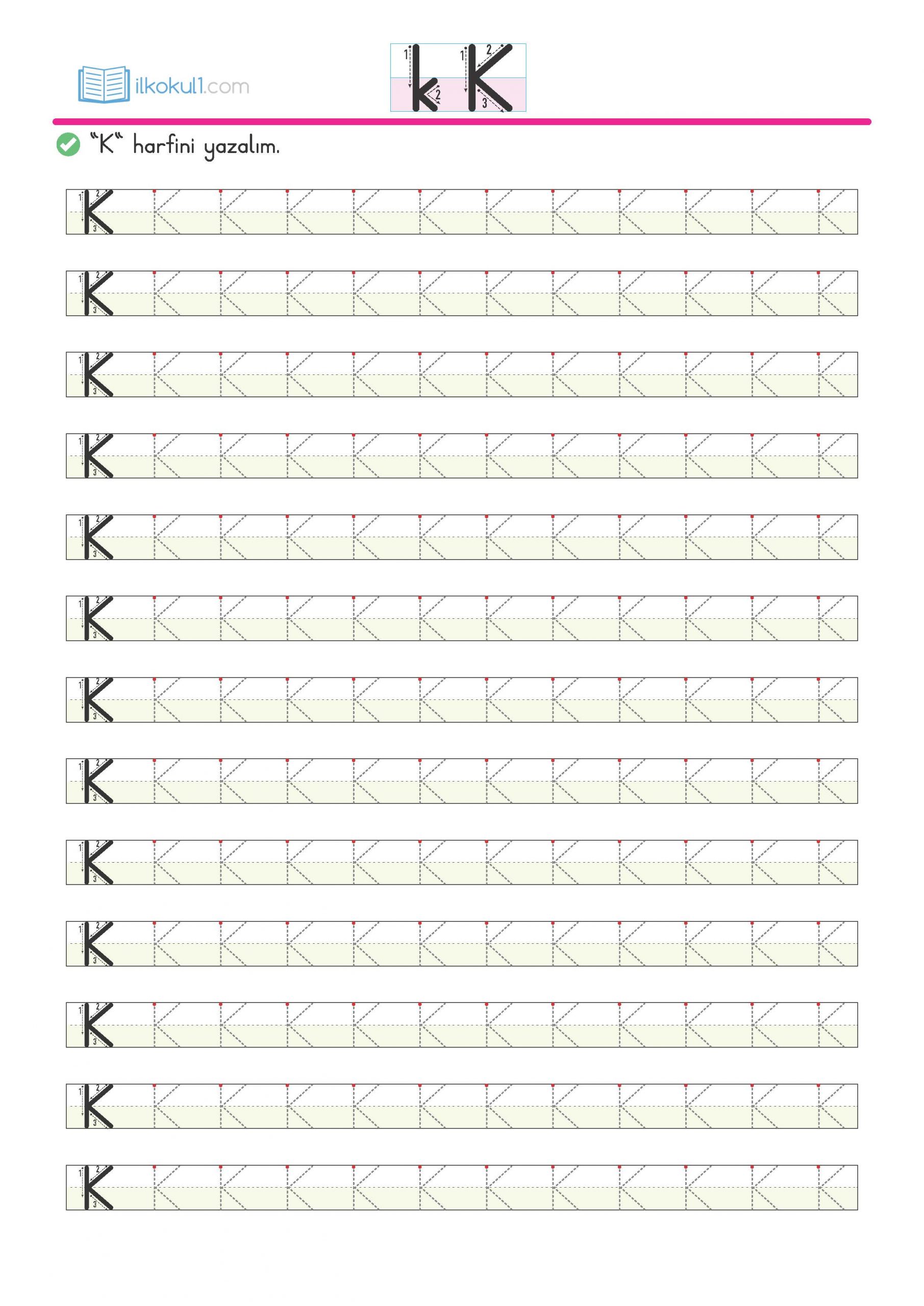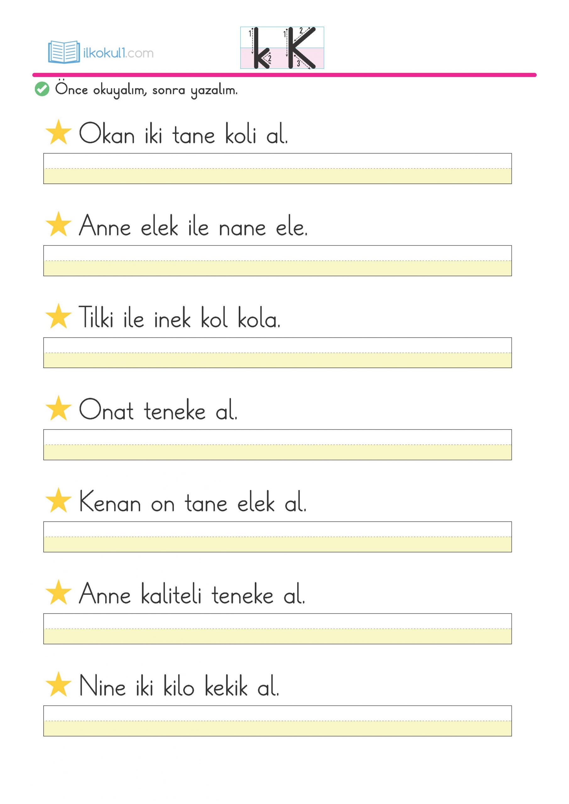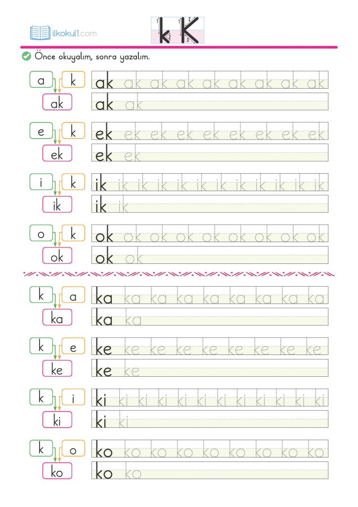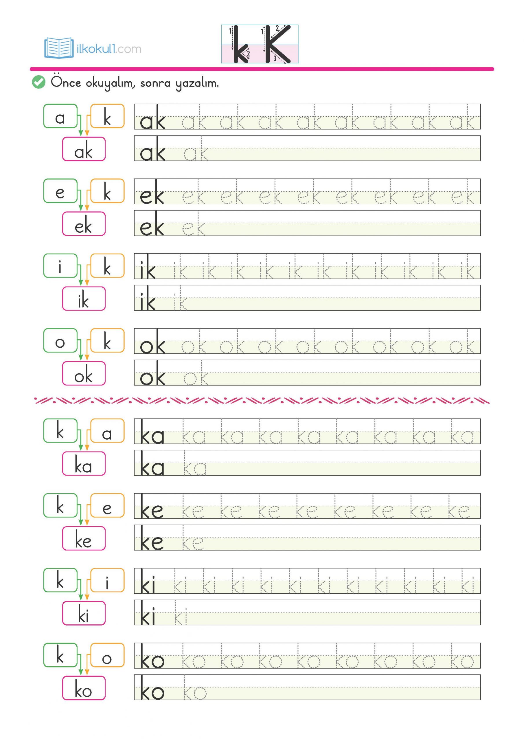 - Aşağıdaki satır dizgelerine “k” harfini yazalım.