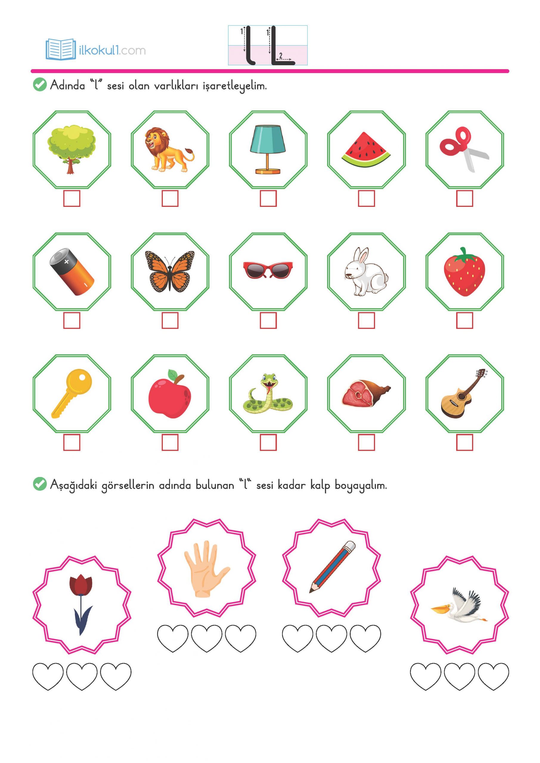 İşte “L” sesi için özgün etkinliklerimizin içerikleri: