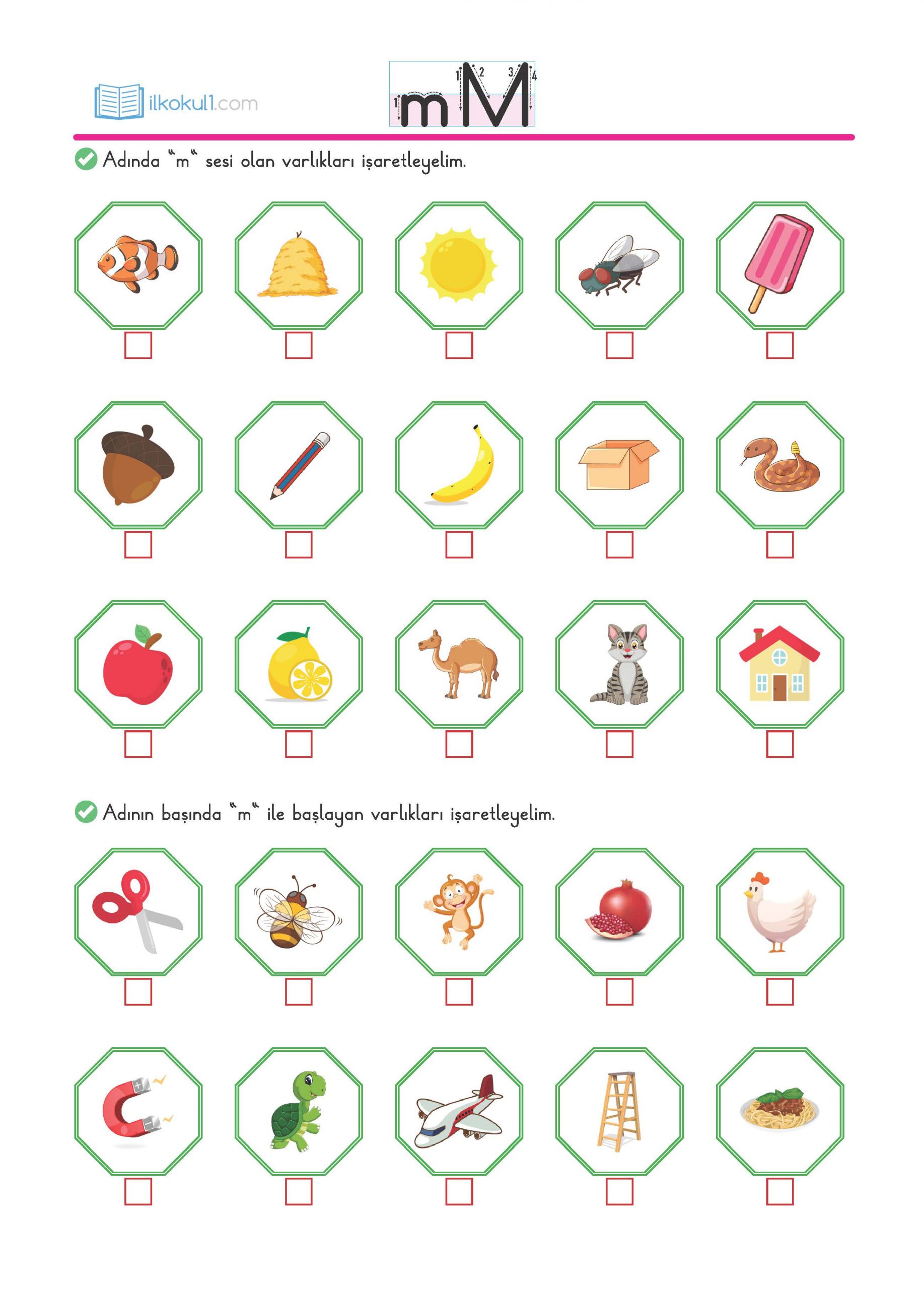- Adında “m” sesi olan varlıkları işaretleyelim.